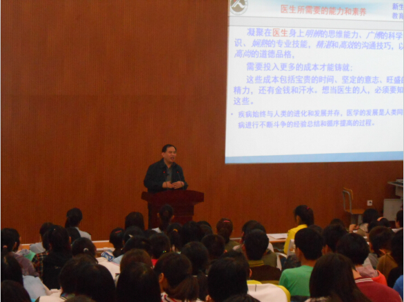 9月17日,基础医学院院长杨保胜教授在平原校区D2大教室对临床医学专业新生做了关于“临床医学教育”的讲座。羲和书院2014级临床医学专业全体学生参加了本次讲座。