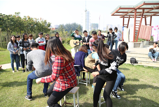 在活动中,辅导员和新生开展了如“大风吹”、“五毛、一块”、“兔子舞”等规则简明、互动性和参与性很强的游戏活动。在游戏中,辅导员放下教师的身份,真正成为学生的好学长、好朋友,学生们也在欢乐的气氛中,认识老师、认识同学、认识大学生活。