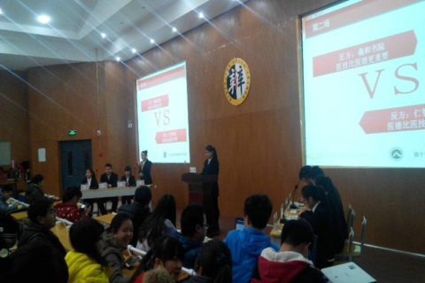本场辩论赛由羲和书院对仁智书院,双方就“医技与医德哪个更重要”展开激烈的辩论。在各个环节中,赛场气氛紧张激烈,双方辩手互不相让,针锋相对,唇枪舌剑,你来我往,却不失风度,侃侃而谈。有的辩手幽默诙谐,逗得全场笑声连连;有的辩手沉着冷静,应答自如,引得场上掌声不断。羲和书院在比赛中所表现出来的镇定和从容深深折服了在场的评委和观众。辩论的各个环节进行完之后,评委代表对辩手们的表现进行了深入细致的剖析和评价,提出了对辩手们的期望,也鼓舞了辩手们的士气。最终羲和书院以优异的表现取得了本场辩论赛的胜利,并且获得了由微博评选产生的“最佳人气书院奖”。