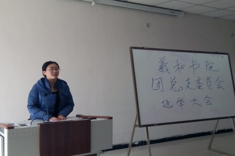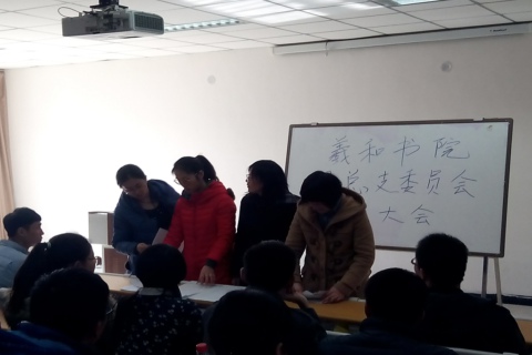首先,由马苏娟宣布羲和书院团总支委员选举大会正式开始,王莉和侯平分别为监票人和计票人,并宣读新一届委员会委员名额和候选人名单。随后,按照《羲和书院团总支选举程序》大会开始第一项,王莉宣读《羲和书院团总支书记委员会选举办法》,全体人员举手表决一致通过。然后,马苏娟宣布大会进行第二项,工作人员给投票人员分发选票,投票人员填写选票后并依次投入投票箱。经过投票,产生了新一届团总支委员会,马苏娟当选羲和书院团总支书记,闫彬为组织委员,张钧硕为宣传委员。