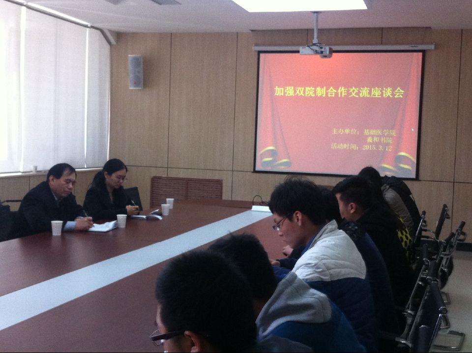 3月12日上午,羲和书院在平原校区三楼召开“关于加强双院制交流座谈会”。基础医学院院长杨保胜、羲和书院党总副书记马苏娟、临床专业相关老师、13级、14级临床专业辅导员和24名学生代表参加了会议。