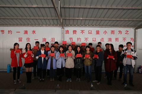整个活动从标语征集到标语制作,再到标语张贴,同学们都认认真真,一丝不苟。为了能使标语能够长时间不被损坏,志愿者们选择了单字张贴,虽然耗时,费力,但他们积极参与,热情高涨,分工明确,经过一个多小时终于张贴完毕。高标准,严要求,使得标语张贴的效果近乎完美,同时引来不少师生前来围观。在张贴标语过程中志愿者还向同学们宣讲节约用水的理念和方法。贴完标语后,同学们打扫了水房,检查并记录了损坏的水龙头,报送学校相关单位,尽快修复,以较少水资源的浪费。