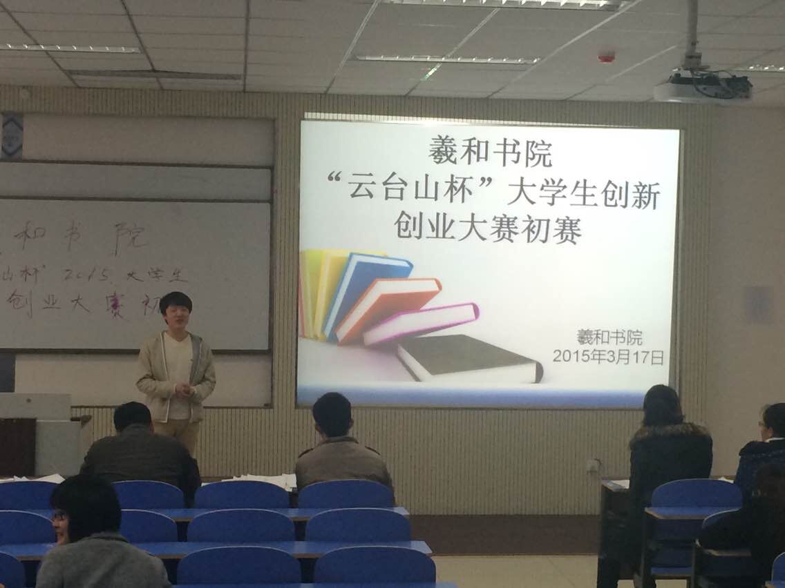 为引导大学生了解创业知识,培养创业意识,提高创业能力,更好地激发和带动大学生的创新创业激情,促进大学生自主创业。3月17日,“云台山杯”创新创业大赛初赛在B402隆重举行。本次初赛由羲和书院学生会主办,参加本次的评委有刘凯老师、张紫阳老师及刘林老师。