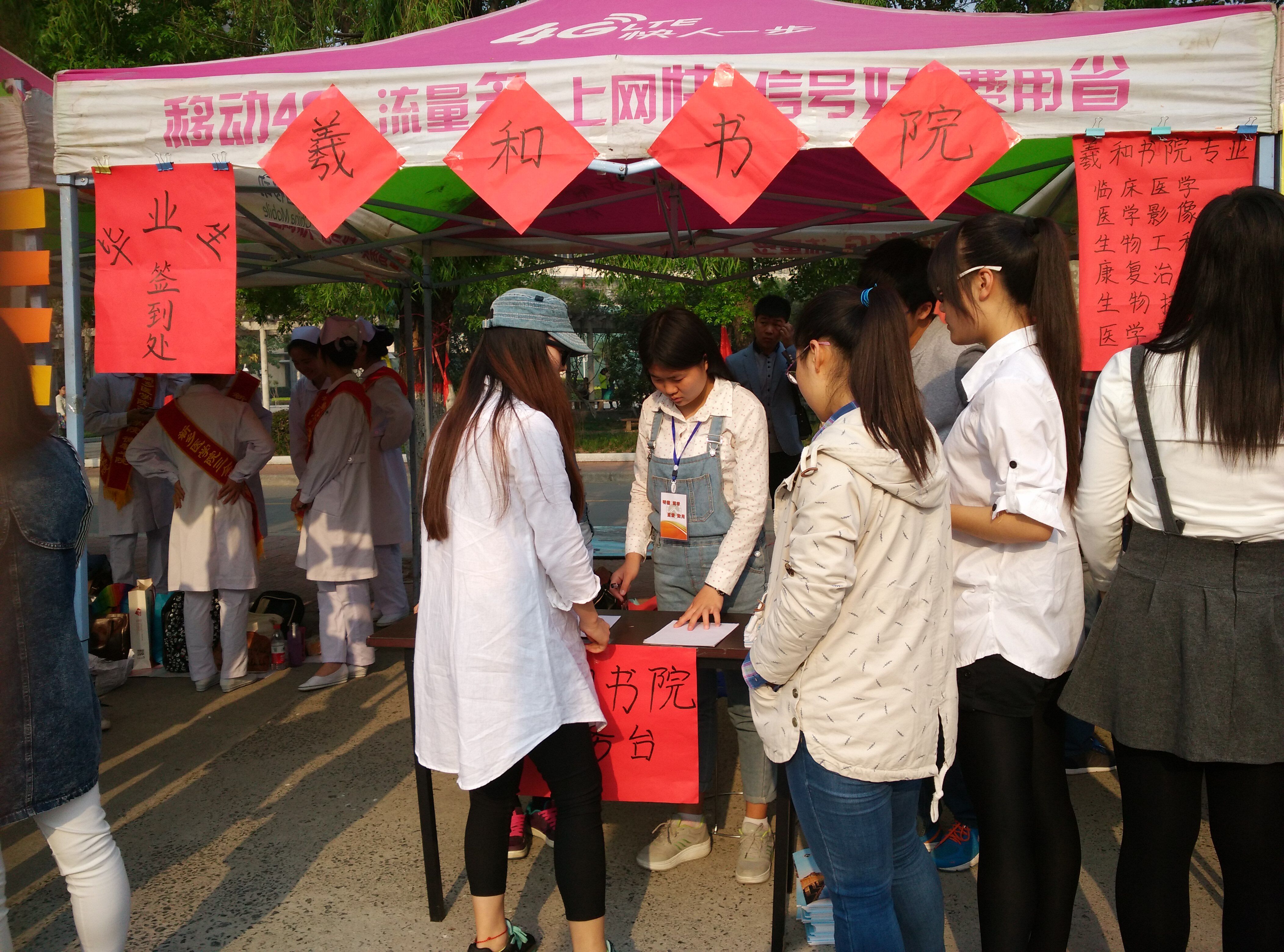 4月25日上午,我院举办的2015年(春季)河南省医学卫生类大中专毕业生就业就业专场在新乡校区问教学楼301教室举行。我院邀请了卢氏县人民医院、上海丽珠生物科技有限公司、贵州福万康康复医院、郑州君乐生物科技有限公司等多家家用人单位对羲和书院2015届毕业生和部分兄弟书院毕业生进行现场招聘。