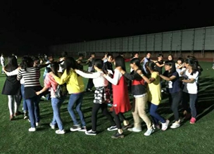 羲和书院15级辅导员及全体新生在风雨操场开展素质提升活动。此次活动以团体游戏的方式展开,游戏包括大风吹、松鼠出洞、桃花朵朵开、滑雪球、小小动物园等,让同学们在做游戏的过程中体会团结协作的重要性。游戏过程中同学们还进行一些才艺展示,操场上不断传出阵阵掌声。