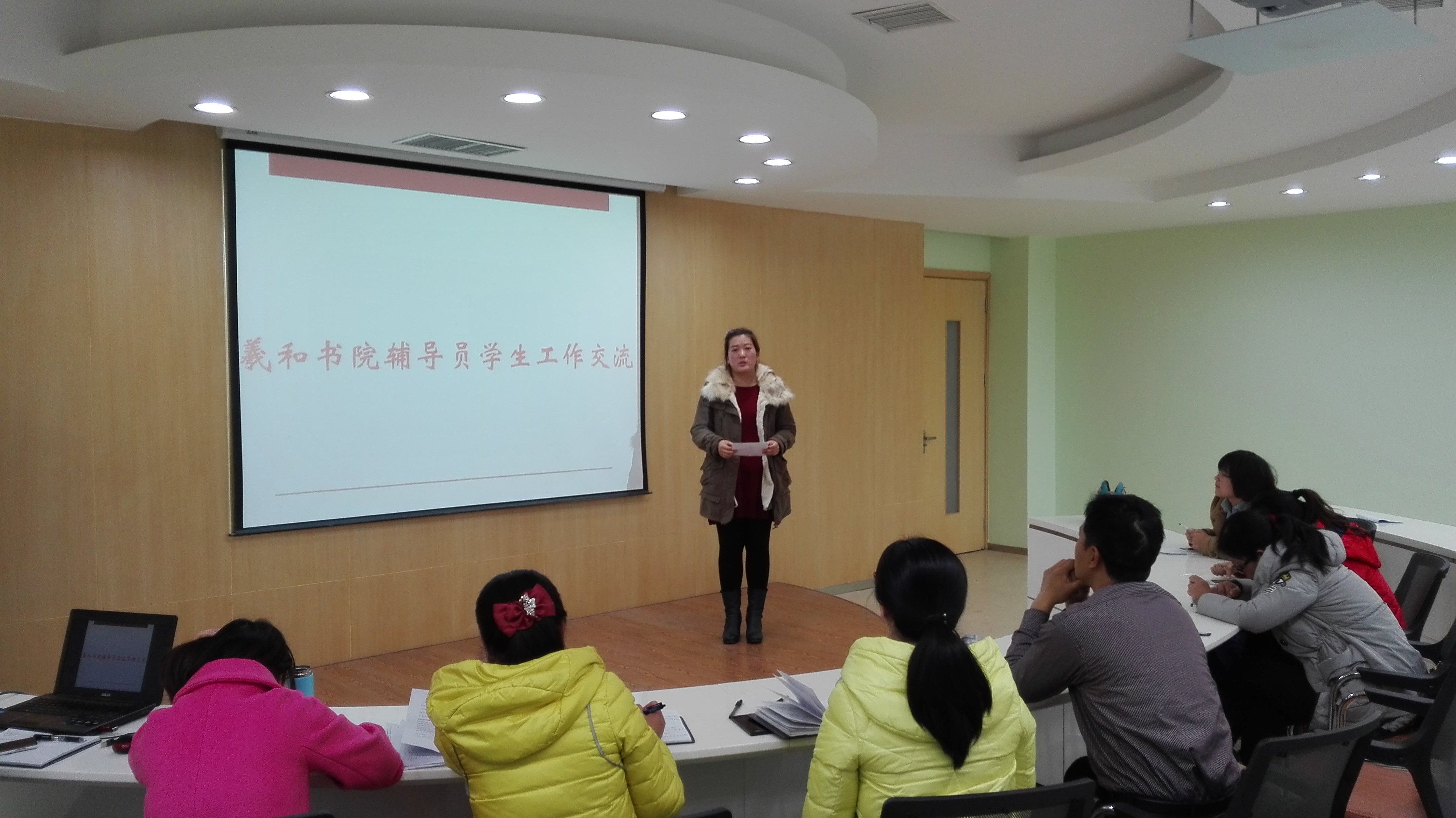 最后,崔书记总结说,讲课能力是辅导员应该具备的能力之一,也是学校对辅导员队伍下一步的工作要求;学生工作是辅导员的工作重心,新老辅导员之间的工作经验交流有助于大家快速掌握学生事务的正确处理办法,在遇到类似问题时才能够事半功倍。