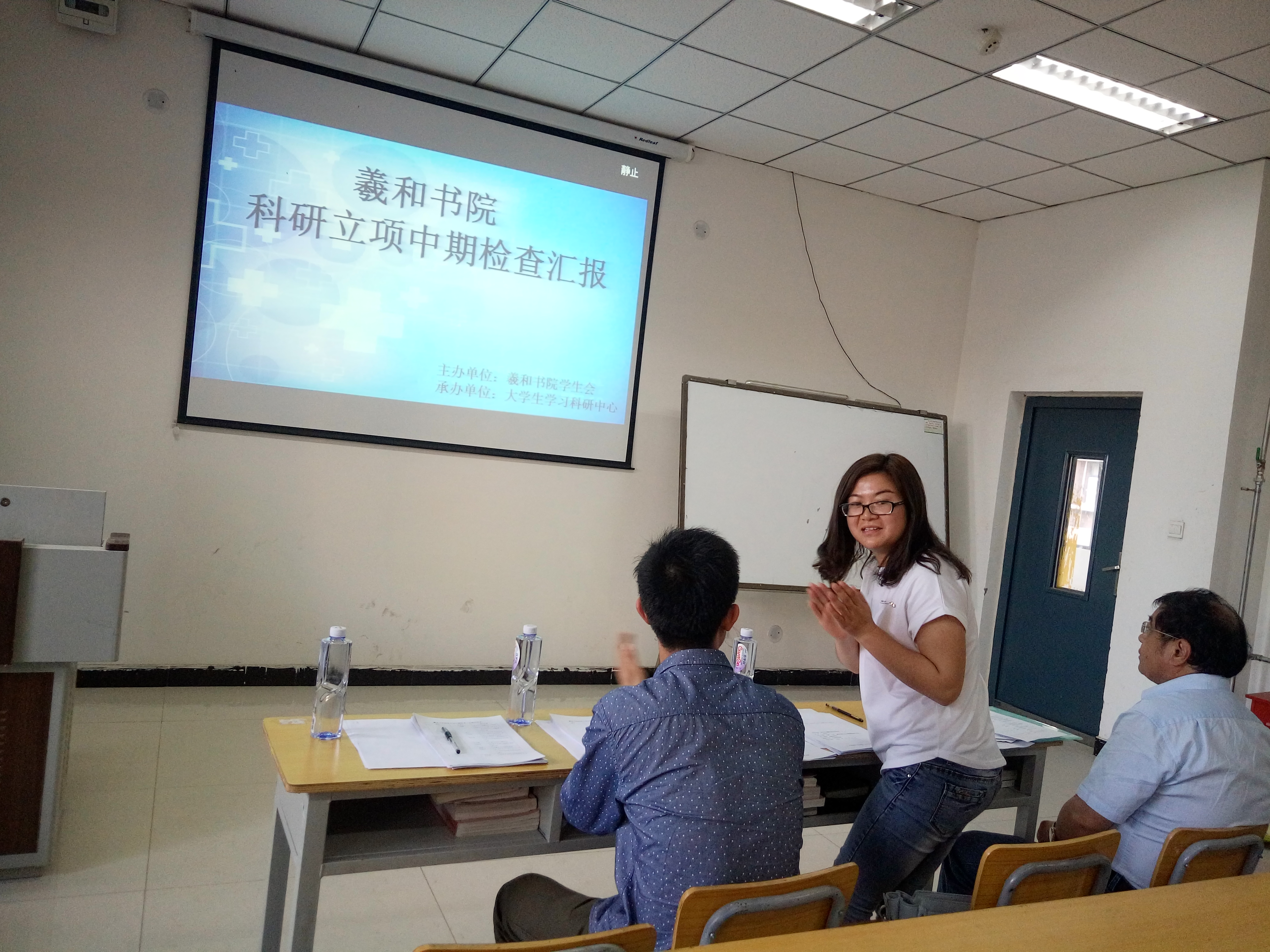 5月17日,由羲和书院学生会主办,大学生学习科研中心承办的“羲和书院科研立项中期检查汇报专题”活动,在第一教学楼C302、C303教室举行。羲和书院党委书记崔向前、副书记马苏娟出席此次活动,华中科技大学教授刘长金,基础医学院郭美霞,思政部老师罗倩倩,羲和书院辅导员刘林、张紫阳担任评委。