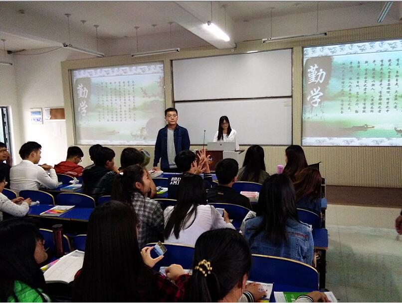 会议上,主持人跟大家讲解了“勤学、修德、明辨、笃实”的内涵。他讲到勤学就是是要解决“为什么学,学什么,怎么学”的问题。首先我们要认真学习马克思主义理论和读书,用新的理念和方法使思想教育更具科学性和时效性。其次要学习中国优秀的传统文化,增强对核心价值观的认同感培养青年学生的人文精神。还要主动学习政治、经济、文化、历史、社会、科技、军事、外交等方面的知识,同学们纷纷点头表示理解。修德是要解决“什么是德,为什么修德,怎样修德”的问题。德,本也,修德,也即修为。首先是慎始,意为万事开头难,好的开始是成功的一半。其次是“慎独”,它既是个人进行道德修养的方法,又是评定一个人道德水准的关键。再次是“慎微”,意为认真重视和正确处置细小的事情。我们不仅要正确识小,还要勤于善小。明辨则是要解决“什么是善恶,怎样辨别善恶,而又怎样扬善除恶”的问题。他强调,首先我们要树立正确的人生观、价值观和世界观。其次要学会思考,善于分析,自动自发。最后是弘扬正气,坚决作正能量的传播者。笃实,是要解决“用什么样的态度做事、做人”的问题。首先我们要“严以修身”,增强“千磨万击还坚劲”的定力。其次我们要有“严以用权”,心怀“举头三尺有神明”的敬畏,心中有法、虑必及法、言必合法、行必依法。还要“严于律己”,养成“吾日三省吾身”的习惯。最后,同学们进行自我反思与交流心得。