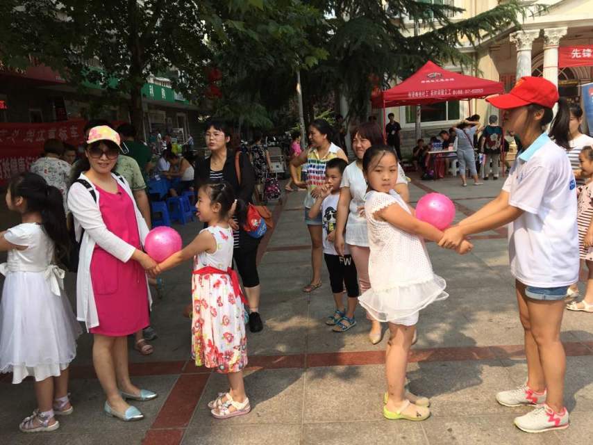 此次活动,由南阳新村办事处绿城社工服务站、计生办、富田社区、新乡医学院三全学院、河南财经政法大学公管学院青年服务队等近十家单位,60余名志愿者与数百名社区居民参与。其中,羲和书院暑期实践队“三全行动 温暖绿城”团队与财经政法大学服务队联合策划的寓教于乐的亲子闯关类游戏“三人两足”、“螃蟹夹球”、“贴鼻子”与有奖知识问答受到广大家长与小朋友的热烈欢迎,成为社区惠民流动超市类活动的新亮点。