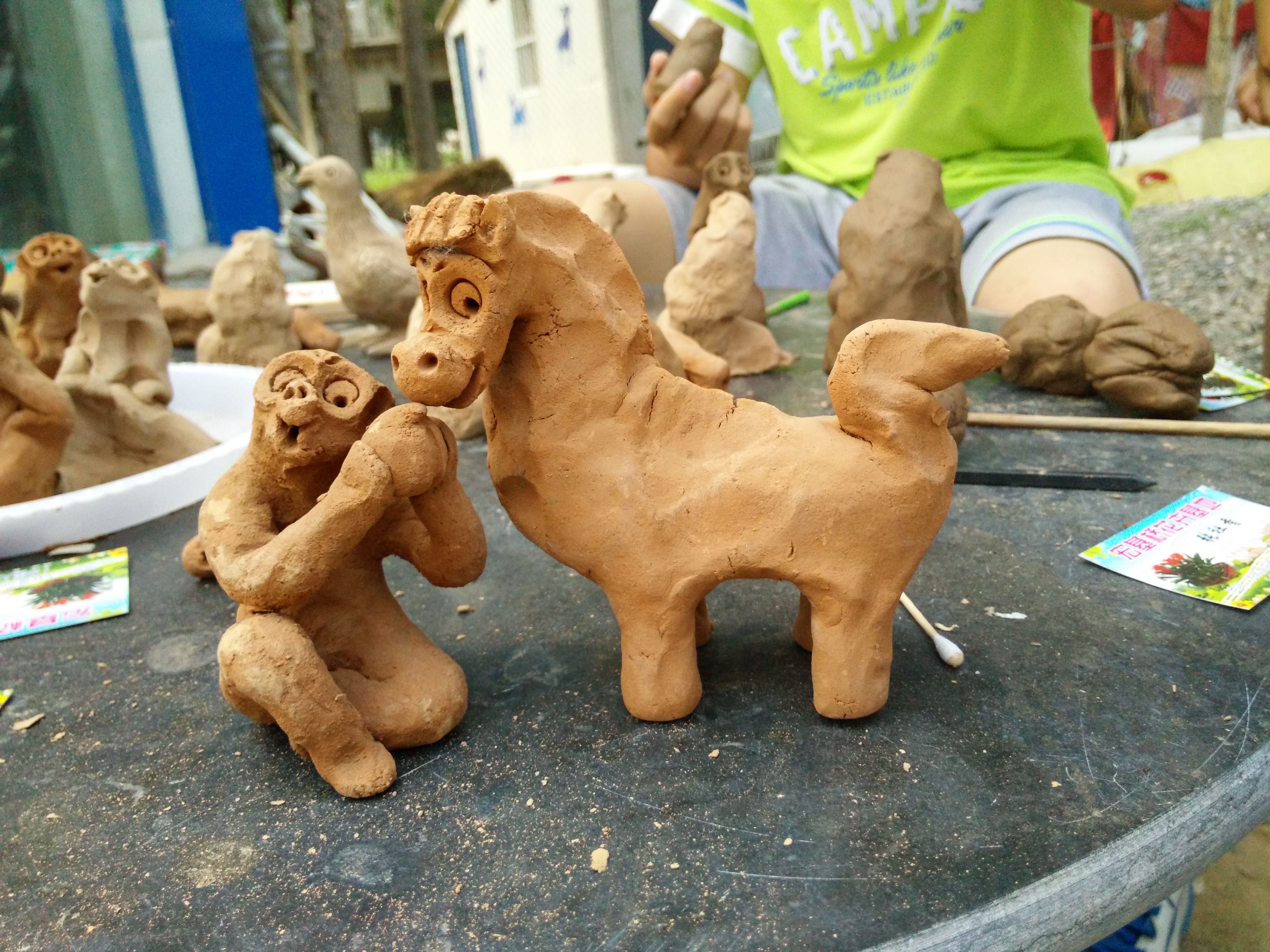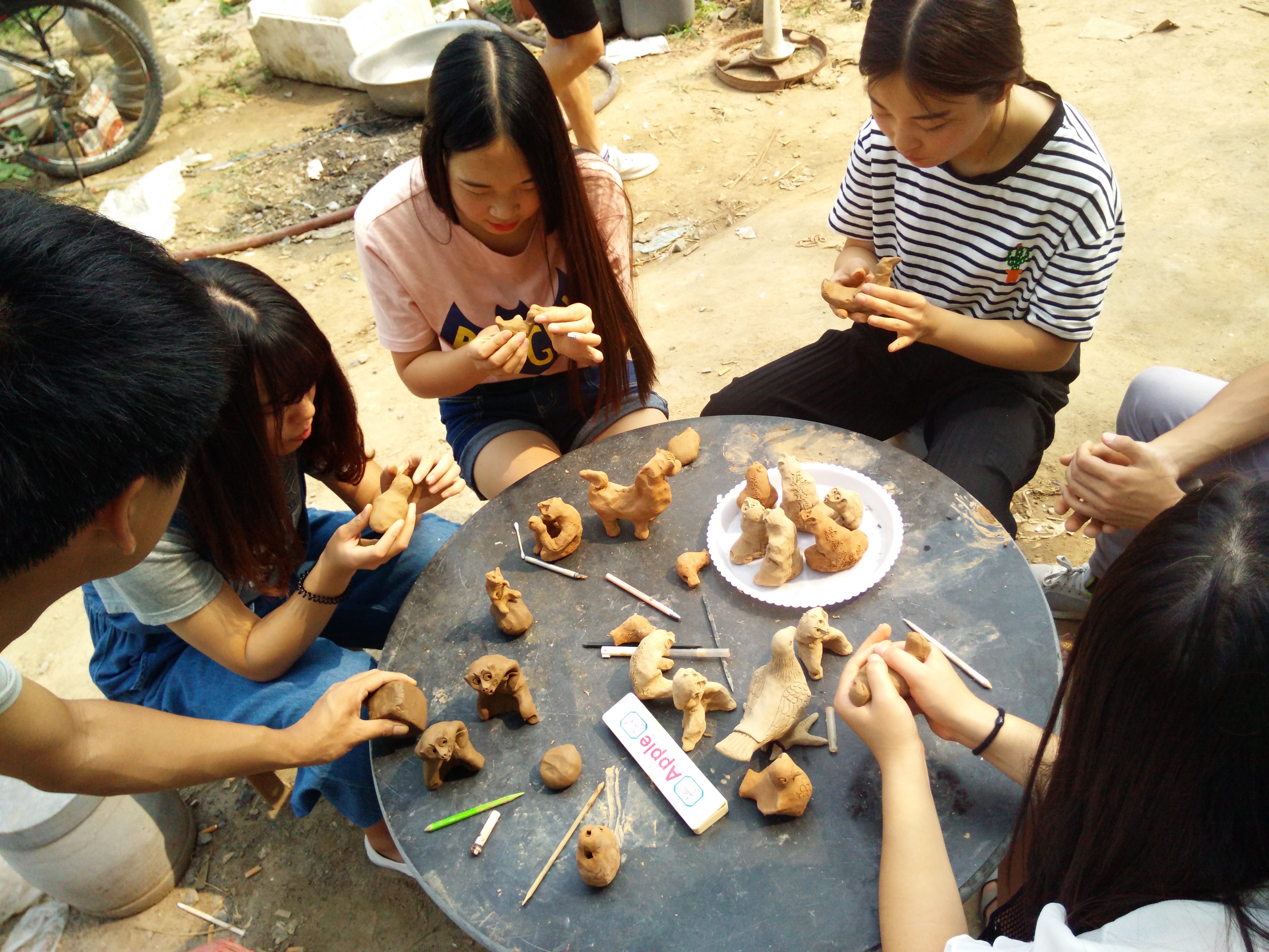 在张老师及其丈夫的帮助下,队员们开始体会泥塑的制作过程,大家先从简单的开始做起,然后逐渐深入,每个人都是全身心的投入到自己的“艺术创作中”,经过一段时间的努力,大家也做出了自己的泥塑作品,虽然很粗糙,但仍然觉得很惊喜。要想让泥塑有响声,插眼的角度很重要。只有把握好角度,才能发出“咕咕”的响声。同学们反复尝试,最后都让手中的泥咕咕发出响声。