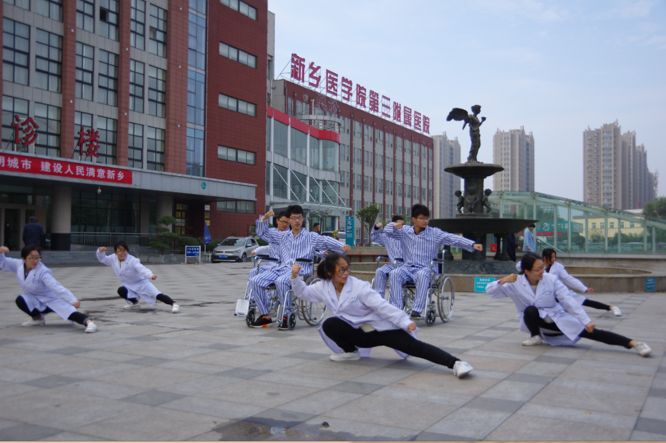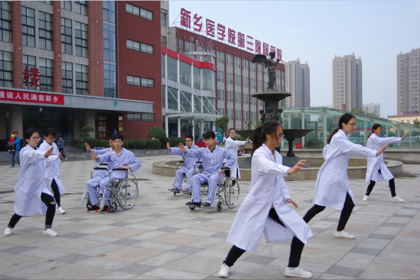 10月22日上午,由新乡医学院三全学院羲和书院2014级康复治疗专业12人组成的“轮椅舞动康复行”团队驱车前往新乡医学院第三附属医院,并在医院门诊楼前的广场内展开“互帮互助,彰显羲和精神”的团日活动。