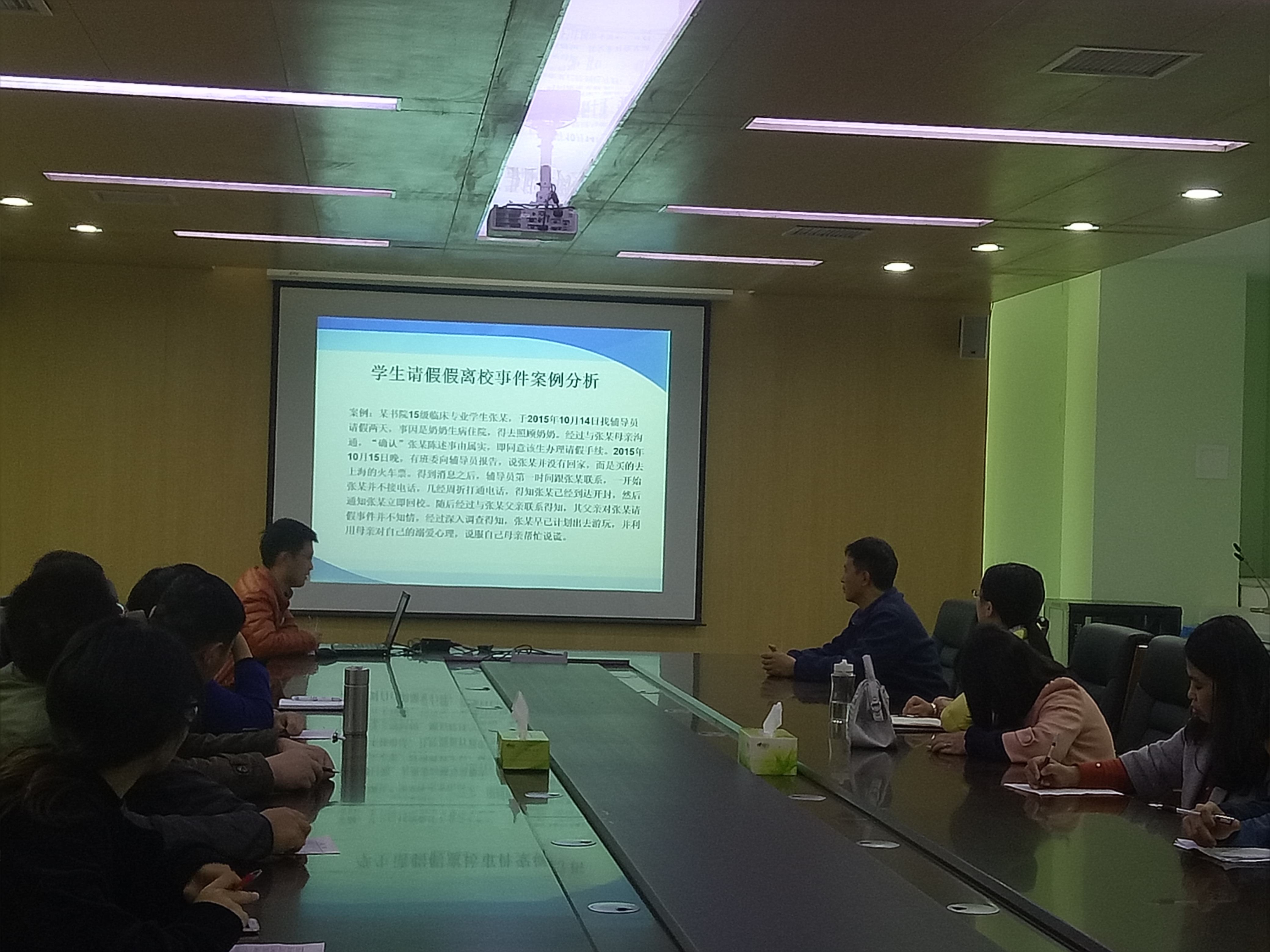 刘林老师从一个学生虚报请假事由的案例出发,分析了事件的隐蔽性与严重性,探讨了如何从学校,老师,家长三个方面来管理教育学生,并提出了切实有效的管理办法。随后孙峰老师与各位老师分享了如何化解学生宿舍矛盾工作经验,给大家在学生工作中处理类似情况提供了切实有效的办法。
