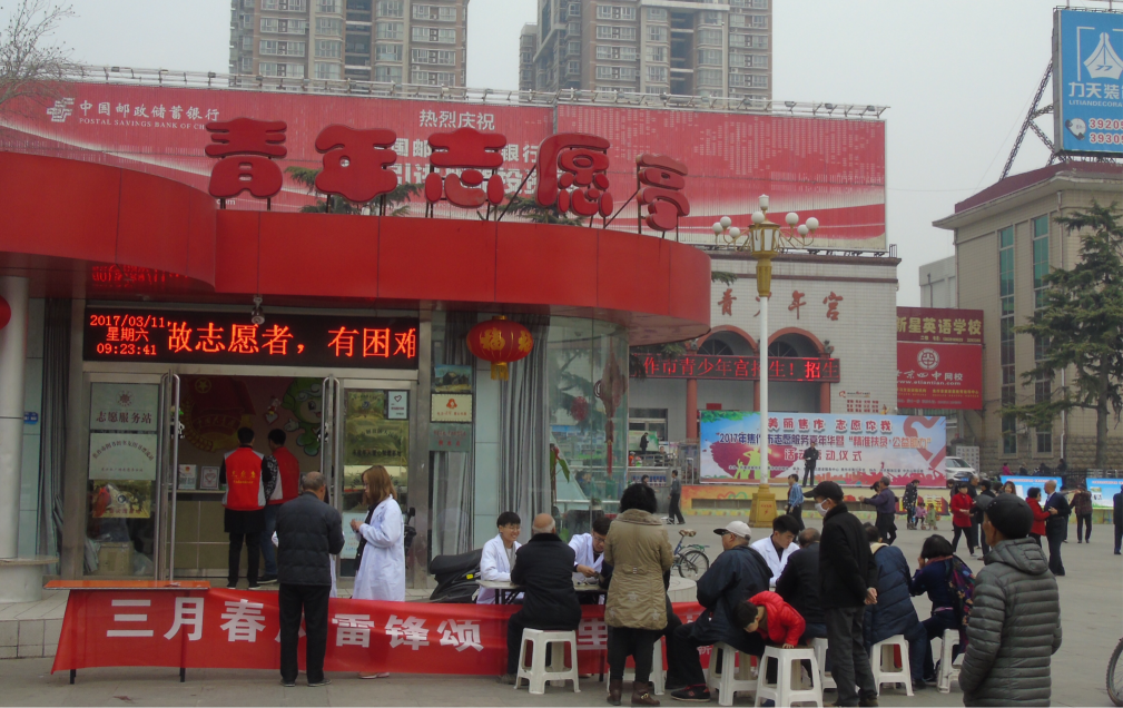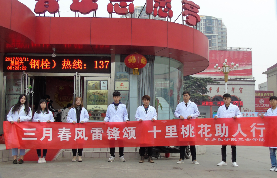 3月11日上午,新乡医学院三全学院羲和书院与焦作市志愿者服务亭在焦作市东方红广场上联合开展了以“三月春风雷锋颂,十里桃花助人行”为主题的志愿服务活动。康复治疗专业15级、16级的同学们参加了本次活动。