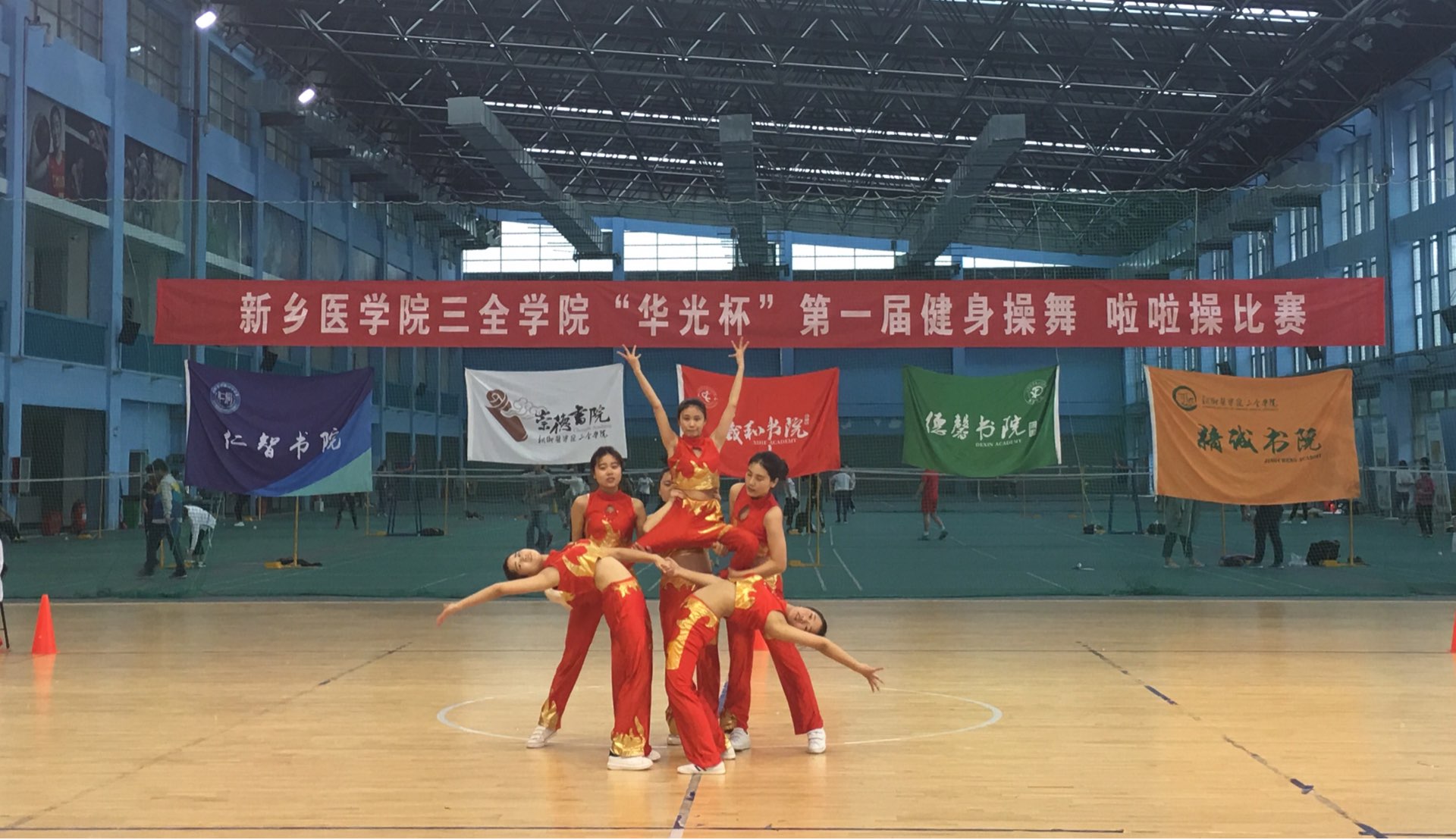 展现活力,赛出风采。4月26日下午,新乡医学院三全学院“华光杯”第一届健身操舞啦啦操比赛在平原校区体育馆隆重举办。体育部主任杨晓林、副主任齐琦、副主任蒋广涛出席。羲和书院代表队20余人参加了比赛。