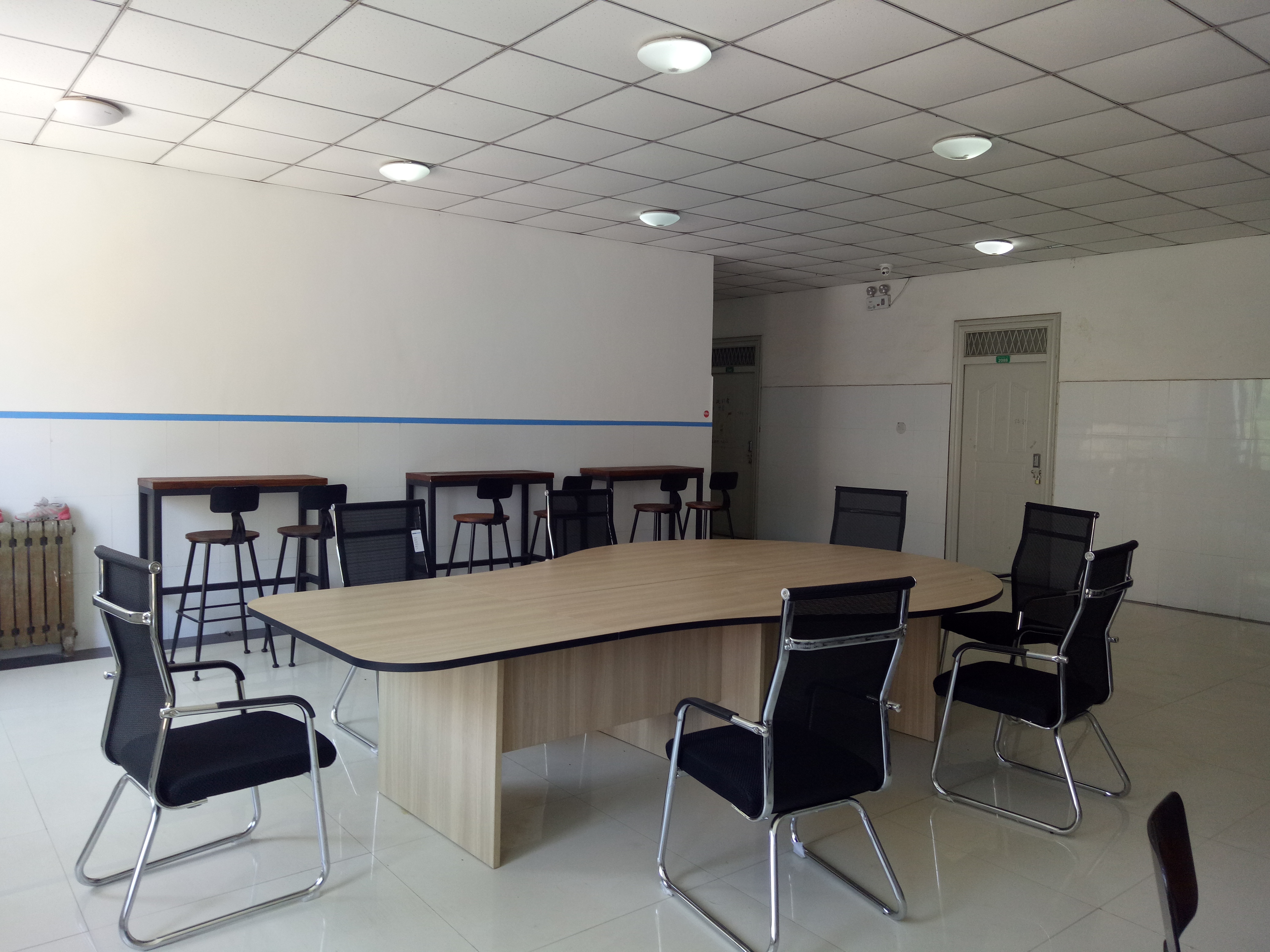 二楼大厅为多功能研讨空间,设有可拼接桌椅,用于学生自由组合开会学习,另提供投影设备供学生展示多媒体作品。