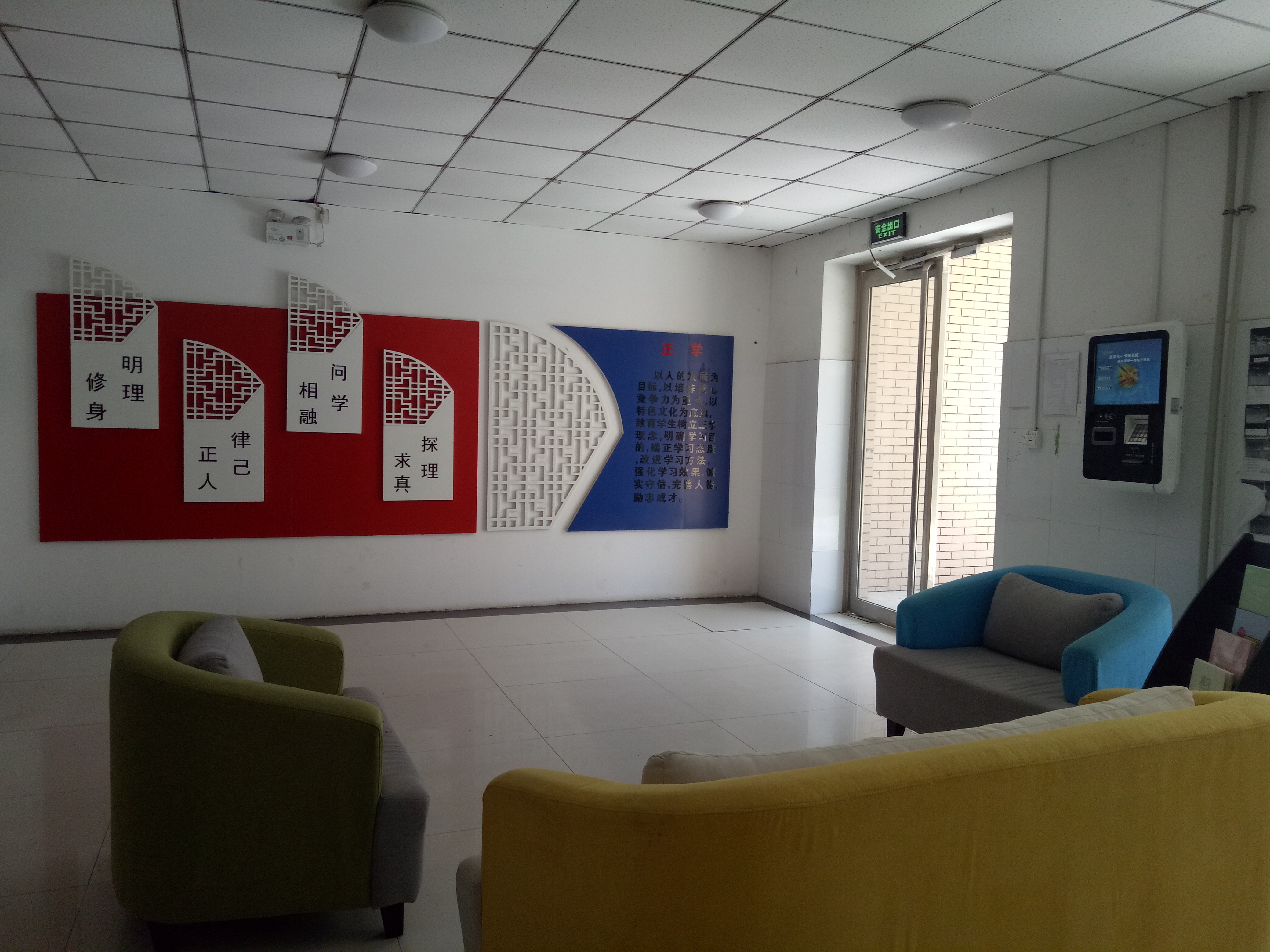 一楼大厅主要是正学理念展示,另大厅摆设沙发以供学生休息、等候或接待之用。