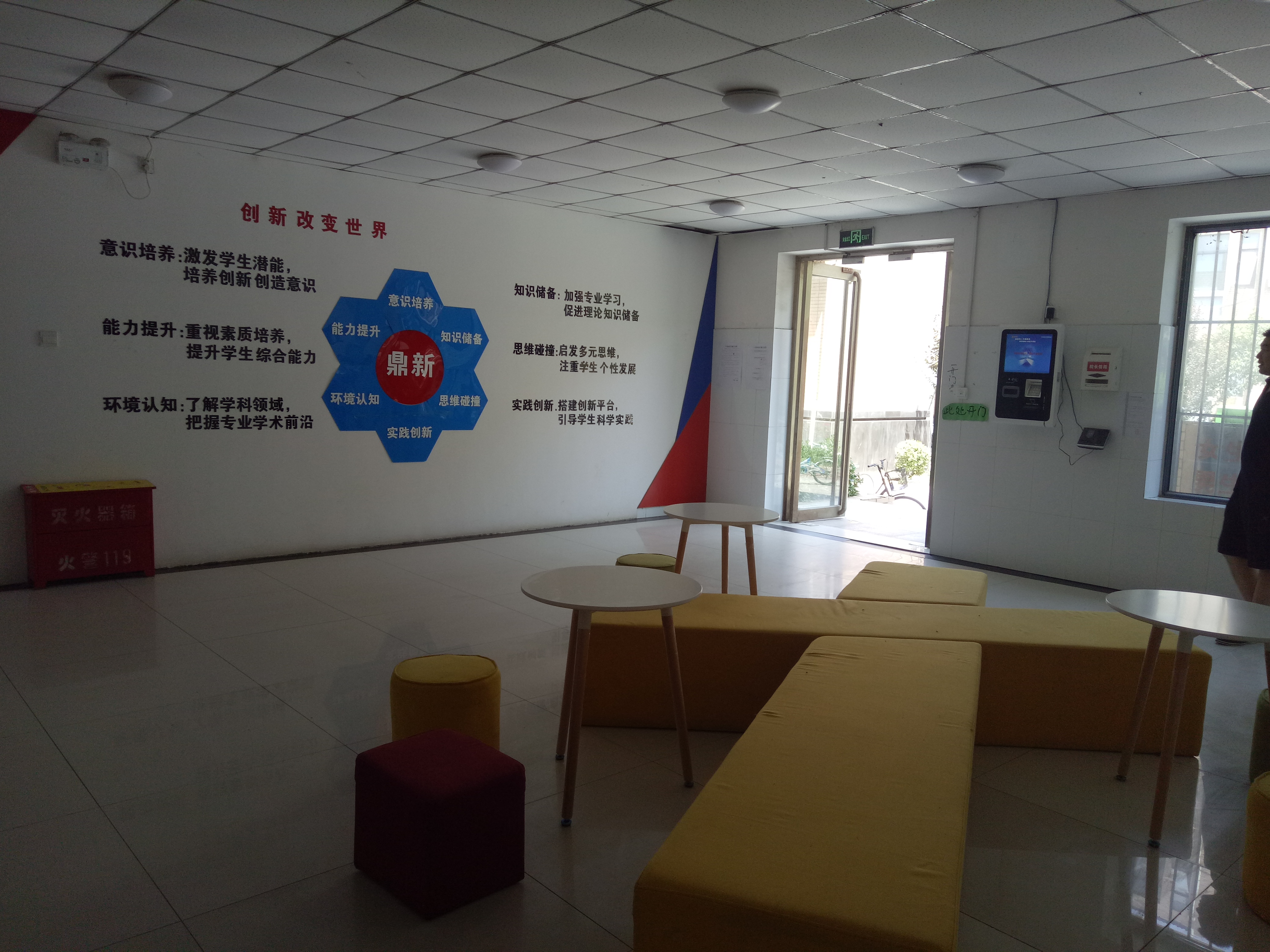 一楼大厅主要是鼎新理念展示,大厅处摆放文化展示架,用于宣传书院文化。