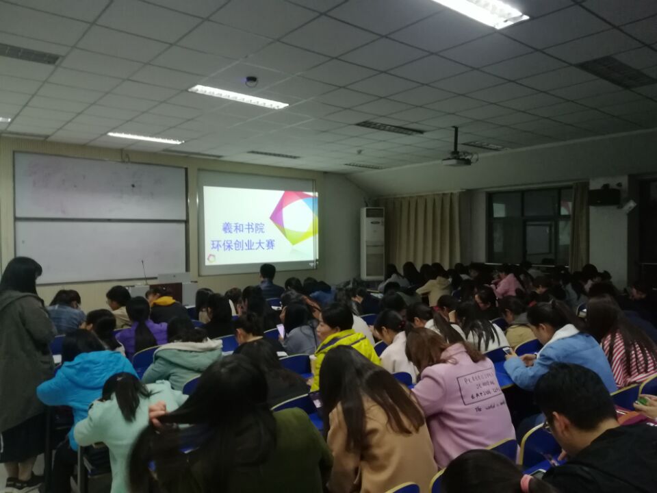 11月16日晚,由羲和书院学生会主办的环保创业大赛在平原校区A301教室拉开帷幕,羲和书院辅导员陈夏楠、张振明与精诚书院辅导员张阳担任评委,300余名羲和学子观看了比赛。