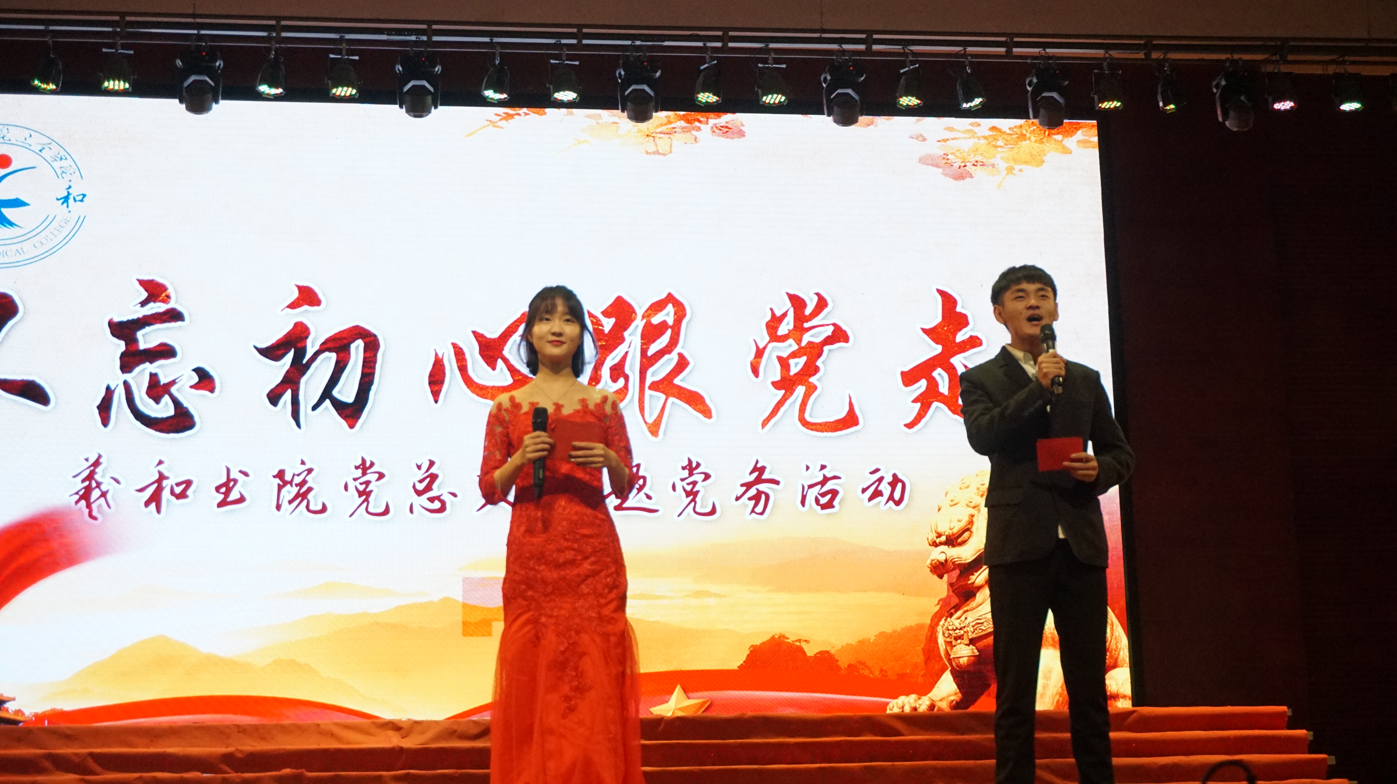 “党的十九大指出的新时代我国的社会主要矛盾是什么?”“中国共产党人的初心和使命是什么?”11月23日晚,在闻德礼堂里,由羲和书院主办的一场主题为“不忘初心跟党走”的十九大知识竞答赛正在举行。我院党委书记王志凯、党委副书记王金文出席,护理学院党总支副书记杨昕岳、羲和书院党总支书记崔向前及800余名师生共同观看。