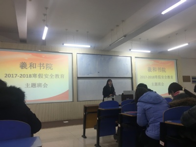 书院全体辅导员高度配合此项工作的开展,通过主题班会、微博、微信、QQ等多种形式,对学生进行了遵纪守法、防火防盗、出行安全、饮食安全及人身和财产安全等各方面的教育。辅导员刘林、刁欢欢、张振明等在班会上着重强调了离校前宿舍安全隐患自检、寒假期间人身财产安全、回家及返校途中的安全等注意事项。书院每位同学都认真填写了假期去向登记表,并纷纷表示会将辅导员的叮嘱谨记于心,一定会注意个人安全,在假期过后安全返校。