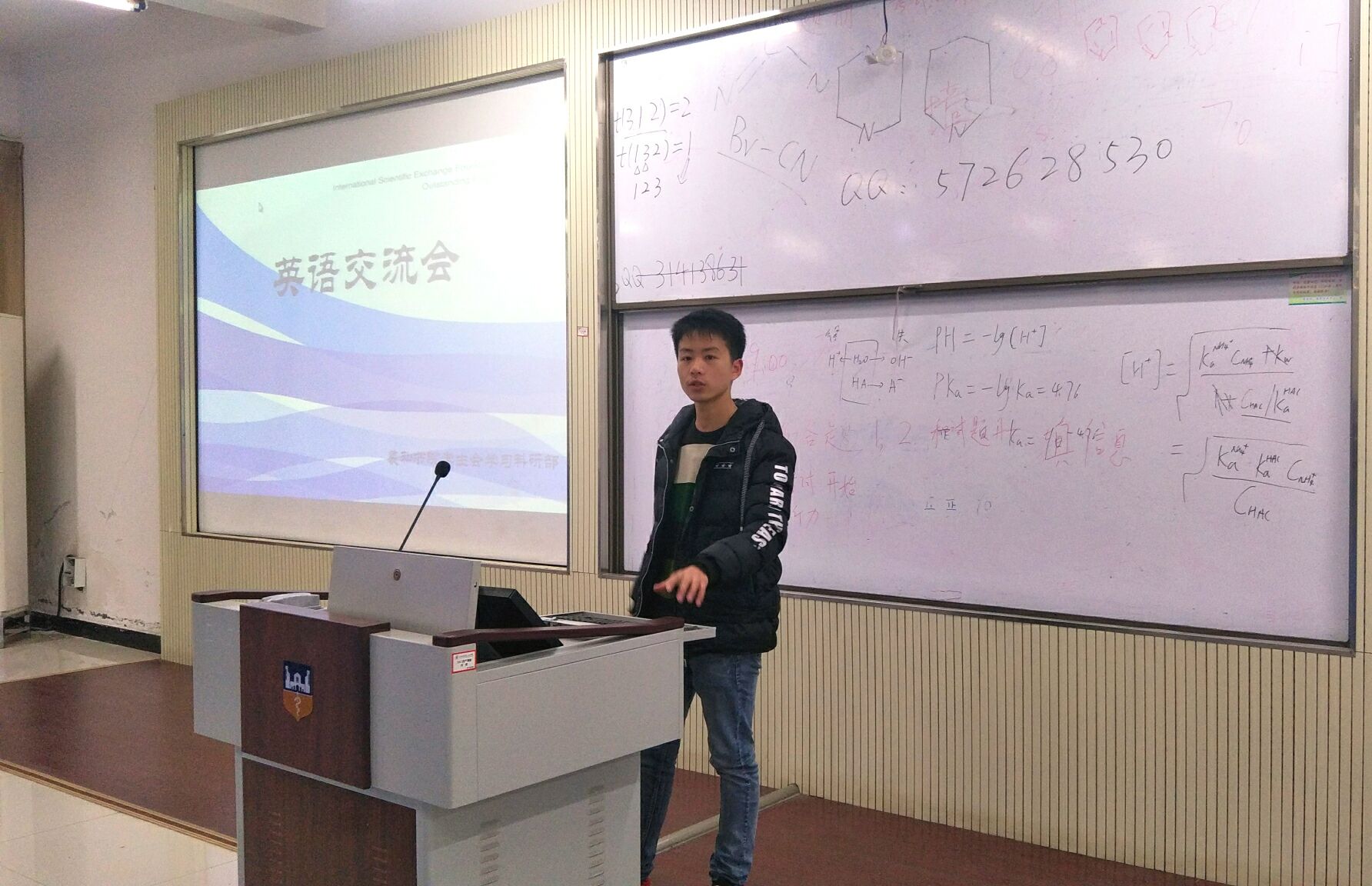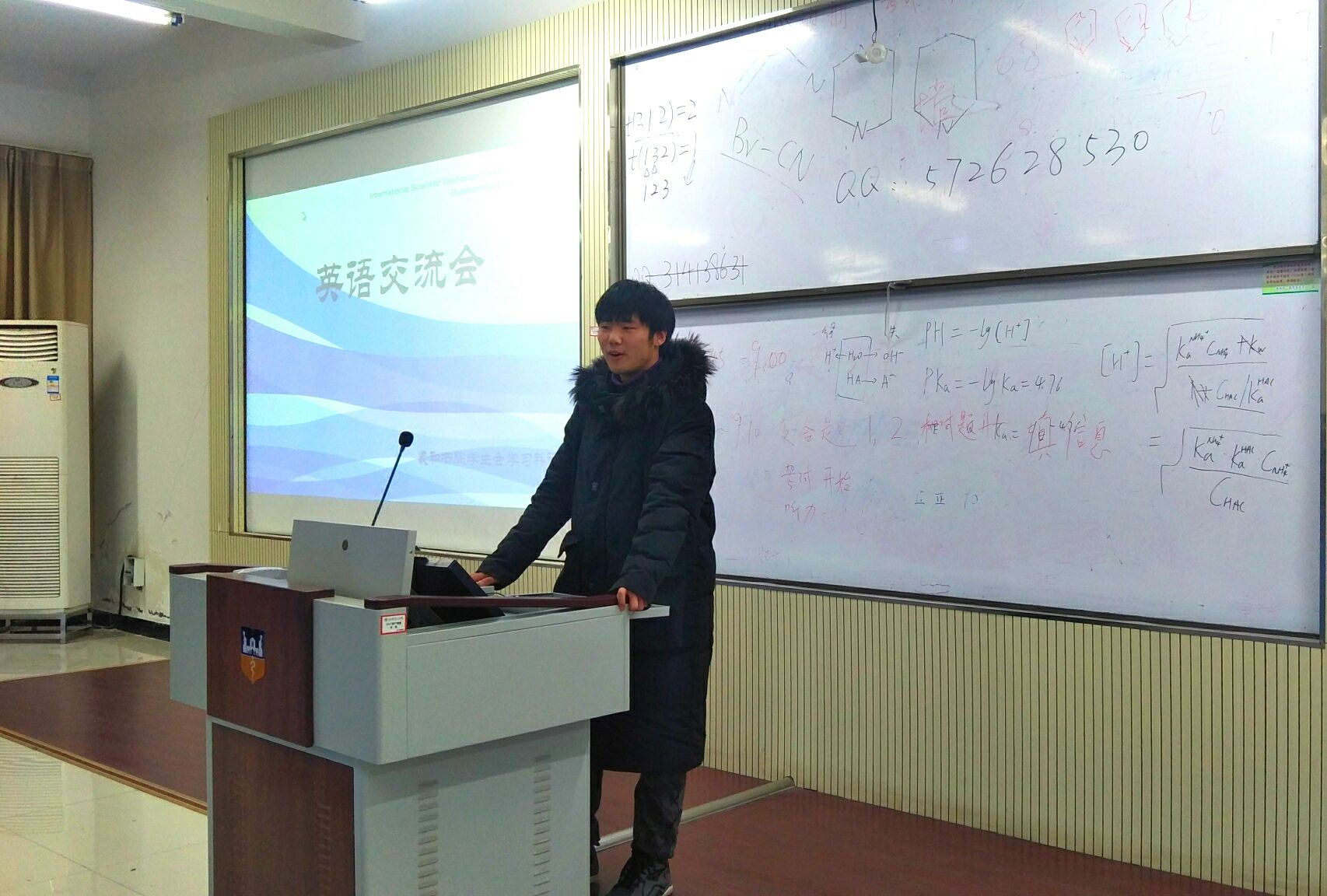 英语交流会有序进行。首先,由主持人介绍本次活动邀请到的在英语学习方面颇有经验的两位16级同学:临床专业的刘凯丽,以及获得过全国口语比赛奖项的毛铎华同学。首先刘凯丽为同学们介绍了一些英语学习的技巧和在四级考试中获得的经验。毛铎华给同学们带来了一些英语口语方面的见解。之后他们分别回答了两位同学在英语学习中的问题。最后由工作人员分发考核材料。