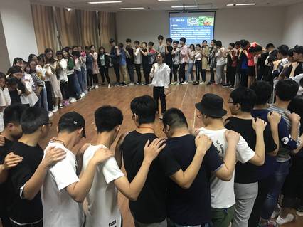 活动伊始,孙媛慧向同学们介绍了此次活动的相关要求。之后,孙媛慧带领同学们开始活动。活动过程中,同学们围成一个同心圆,然后通过拥抱和握手的方式相互认识。经过简短的交流后,同学们依次坐到后面一个同学的腿上直至全体坐下并双手平举,坚持几分钟后,孙媛慧宣布游戏结束。活动最后,孙媛慧总结此次活动并称赞同学们团结协作、坚持不懈的精神,希望同学们能够再接再厉。