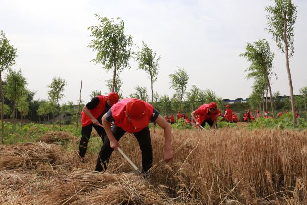 为深入贯彻实施新乡医学院三全学院“党员先锋工程”,创建服务型党组织,在实践锻炼中不断提升党员服务能力,6月4日,由羲和书院党总支书记崔向前担任队长,40余名师生党员组成的党员志愿服务队,来到原阳县原武镇,帮助当地困难群众收割小麦,以实际行动诠释“一个党员就是一面旗帜,一名干部就是一根标杆”,充分发挥学生党员先锋模范带头作用,把服务群众工作做到“零距离”。