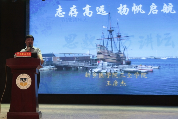 砥砺品格,为梦前行。6月5日晚,新乡医学院三全学院副院长王彦杰应邀做客我院“闻德大讲坛”之“思邈论方”讲坛,在平原校区闻德礼堂为八百余名三全学子做“志存高远、扬帆起航”专题讲座。羲和书院党总支书记崔向前、党总支副书记刘小磊出席讲座。