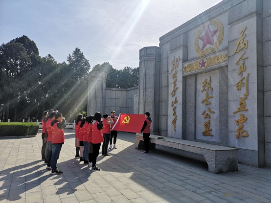 上午8点支部党员同志带着虔诚和使命感奔赴“新乡市烈士陵园”开展实践活动。首先,由姚文明同志宣布活动开始并发言,全体党员同志为长眠于此为国牺牲的烈士默哀一分钟,现场气氛庄严而凝重。全体党员一同宣誓“我志愿加入中国共产党,拥护党的纲领,遵守党的纪律........”坚定的言语萦绕耳畔,烈士们英勇无畏的身躯仿佛就在眼前。带着沉重心情的支部党员代表向先烈敬献黄白菊花。随后党员同志一起参观烈士陵墓,追忆先烈的光辉事迹,感受革命烈士赤诚的信仰与坚定的信念。