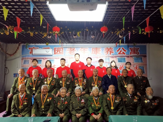 4月21日,为了使同学们牢记使命,传承红色基因。新乡医学院三全学院羲和书院2016级康复治疗学54班志愿者服务团队参加了郑州老战士之家平原新区疗养接待中心(富乐园老年公寓)的揭牌仪式。