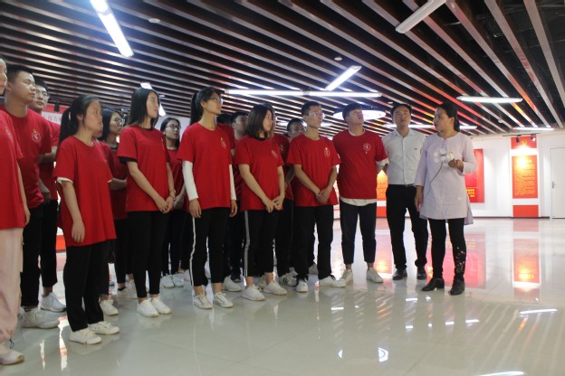 活动四,“不忘初心,永铸红色党魂”。位于图书馆一楼的“新时代学习馆”是同学们学习党务知识的不二之地。学生代表在讲解员的带领下共参观学习了六个展区,分别听取了党史、党章、入党誓词的讲解,了解了部分红色经典书籍。老师讲得生动、细致,同学们听得用心、入神,超出了预期学习效果。