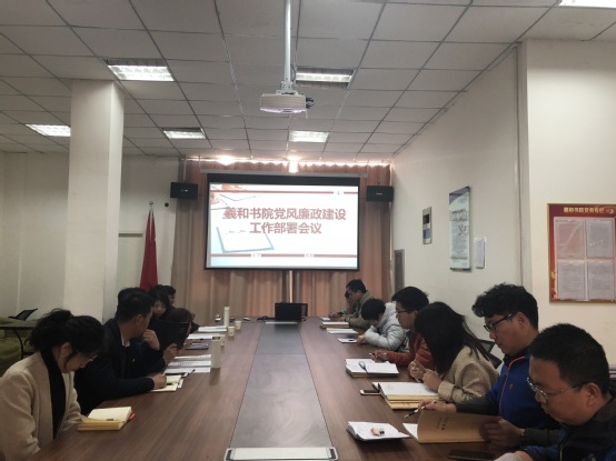 3月11日,羲和书院党总支在书院会议室召开2019年度党风廉政建设工作部署会议,羲和书院党总支书记崔向前、副书记刘小磊出席,全体教职工党员参加会议。