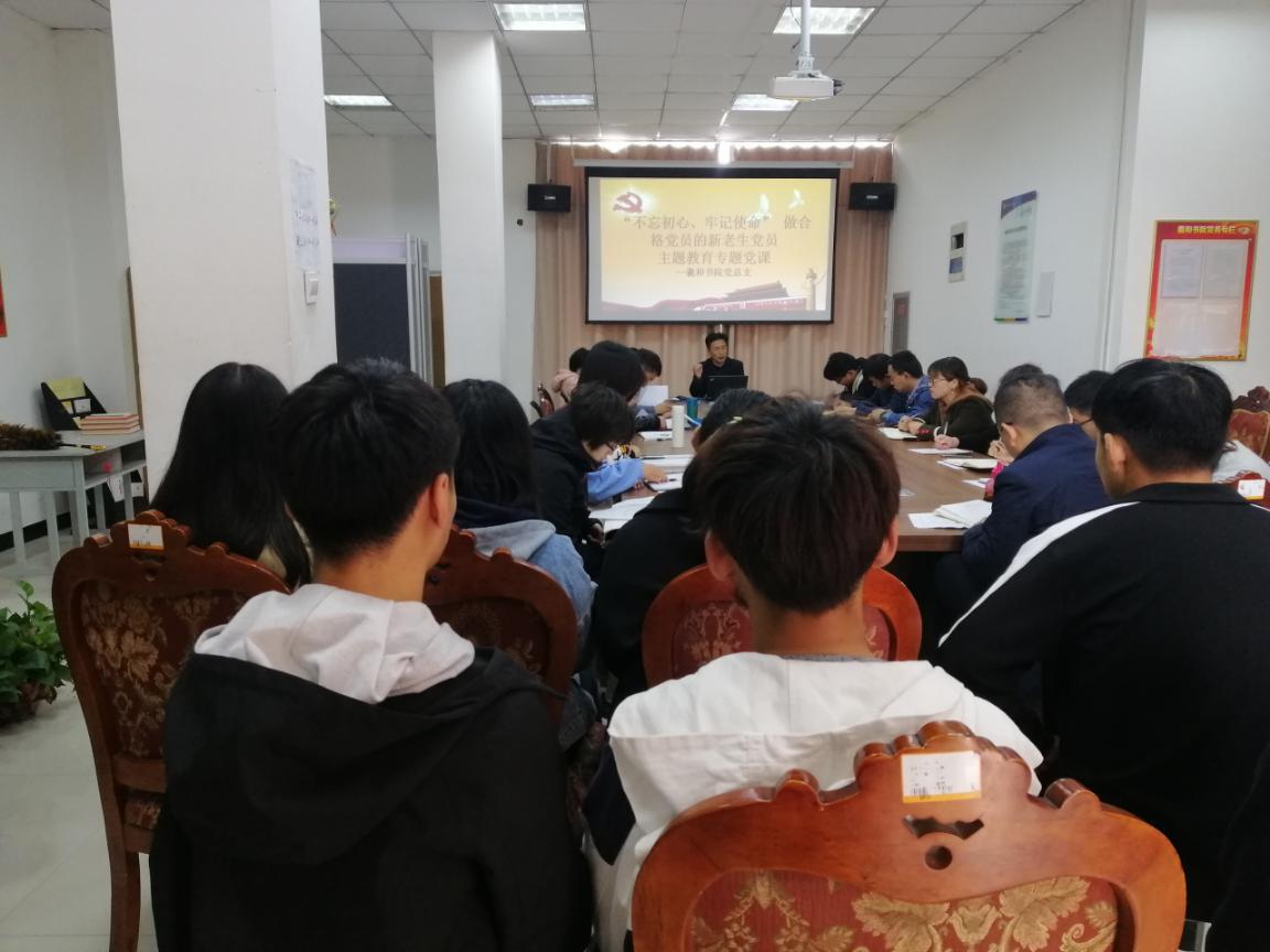 10月17日,结合庆祝新中国成立70周年和全国开展“不忘初心,牢记使命”及“以案促改”主题教育,我书院党总支特开展“不忘初心、牢记使命、廉洁从教、做合格党员”主题教育专题党课。党课由羲和书院党总支书记崔向前讲授,羲和书院党总支副书记刘小磊、各支部教师党员及学生党员参加。