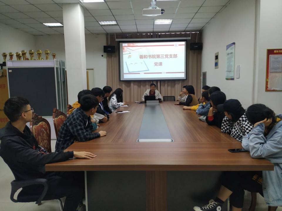 2019年10月31日下午5时,羲和书院学生第三党支部全体党员在支部书记张科峰的带领下,在羲和书院会议室开展了以“不忘初心,牢记使命”为主题的党课宣讲活动。