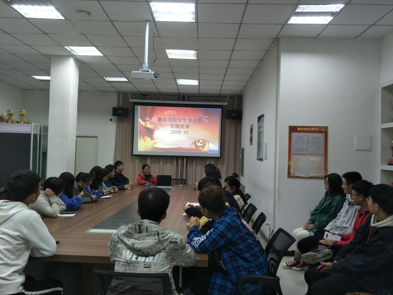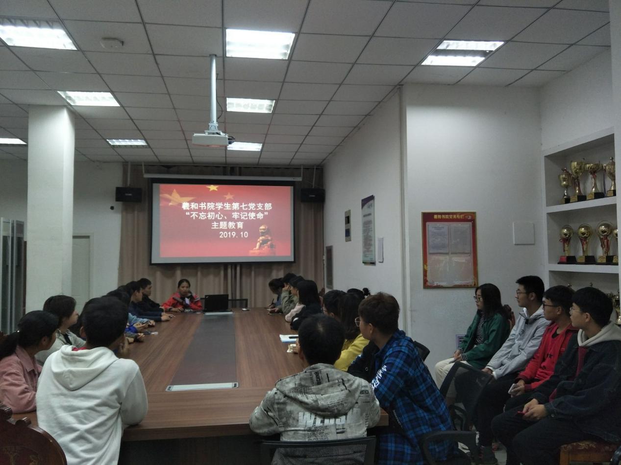 2019年10月18日,羲和书院学生第七党支部党员在支部书记张俊景的带领下,在羲和书院会议室开展了以“不忘初心,牢记使命”为主题的党课教育。