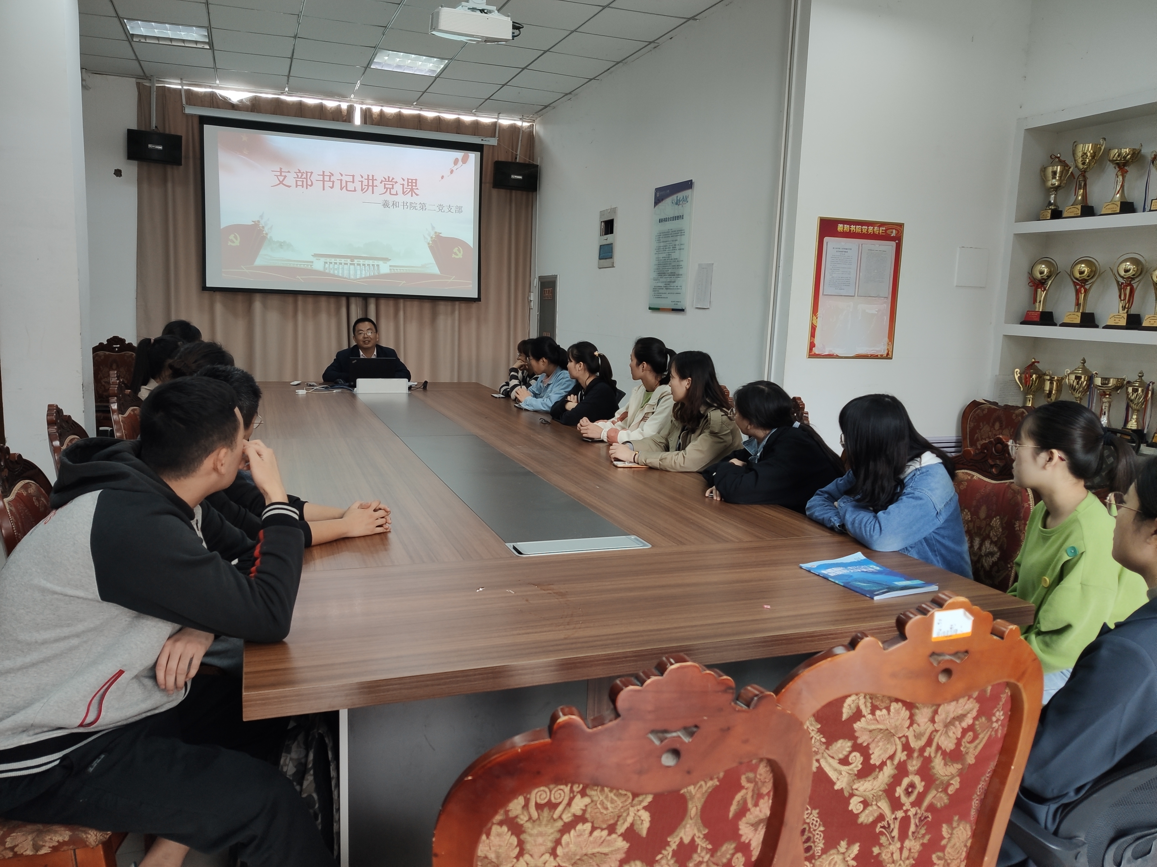 2019年 10月31日,羲和书院第二党支部书记李竞云在羲和书院会议室,围绕充分认识“不忘初心、牢记使命”主题教育重要意义、准确把握初心使命的内涵实质、党员义务纪律等方面,为党员们上了一堂生动的党课,并进行了学习交流