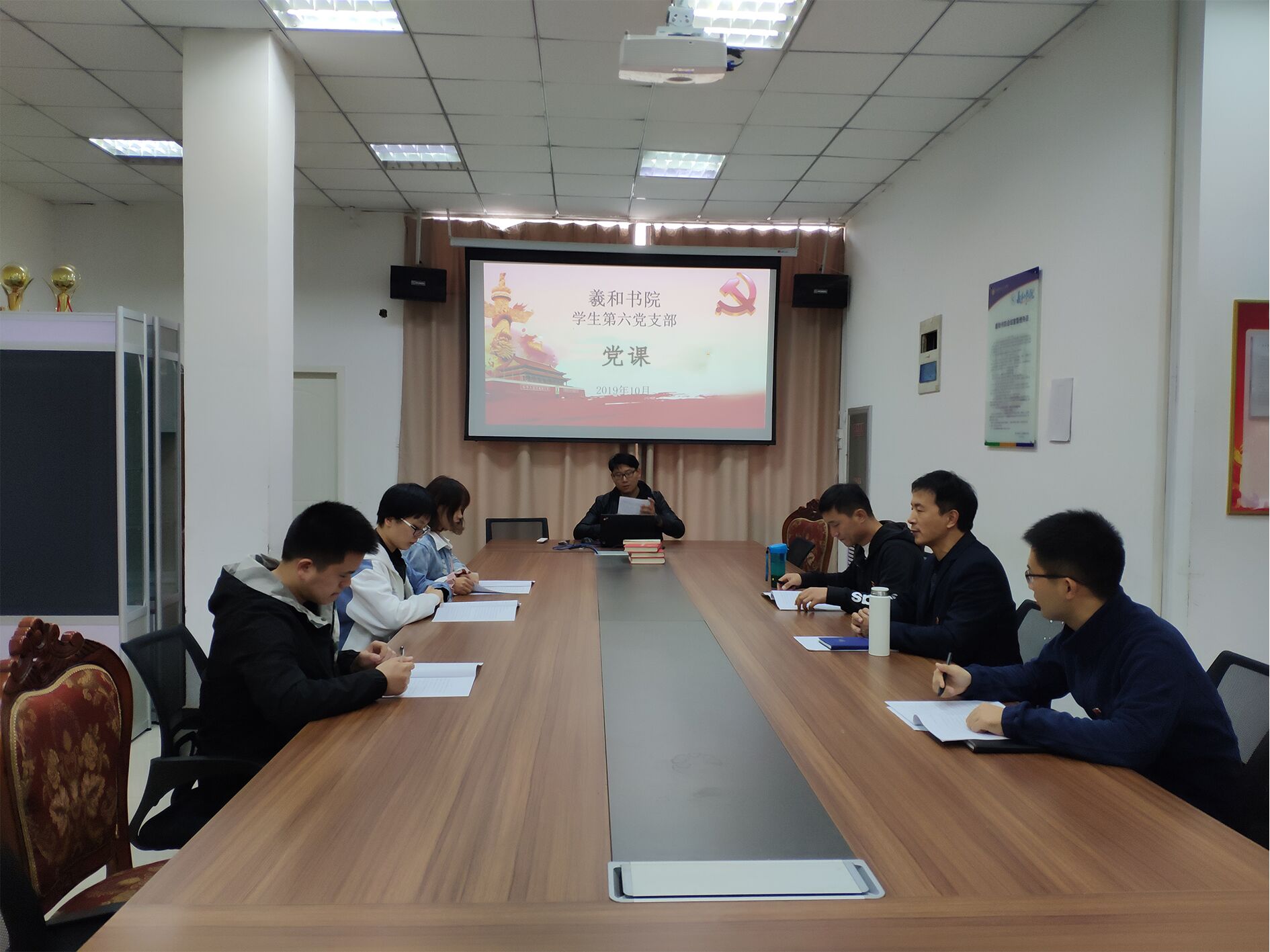 为进一步深化 “不忘初心、牢记使命”主题教育学习, 10月18日,羲和书院党总支学生第六党支部书记张振明同志以“学党史、明初心、知使命——不忘初心、牢记使命党课学习”为题,为支部全体党员讲授专题党课。