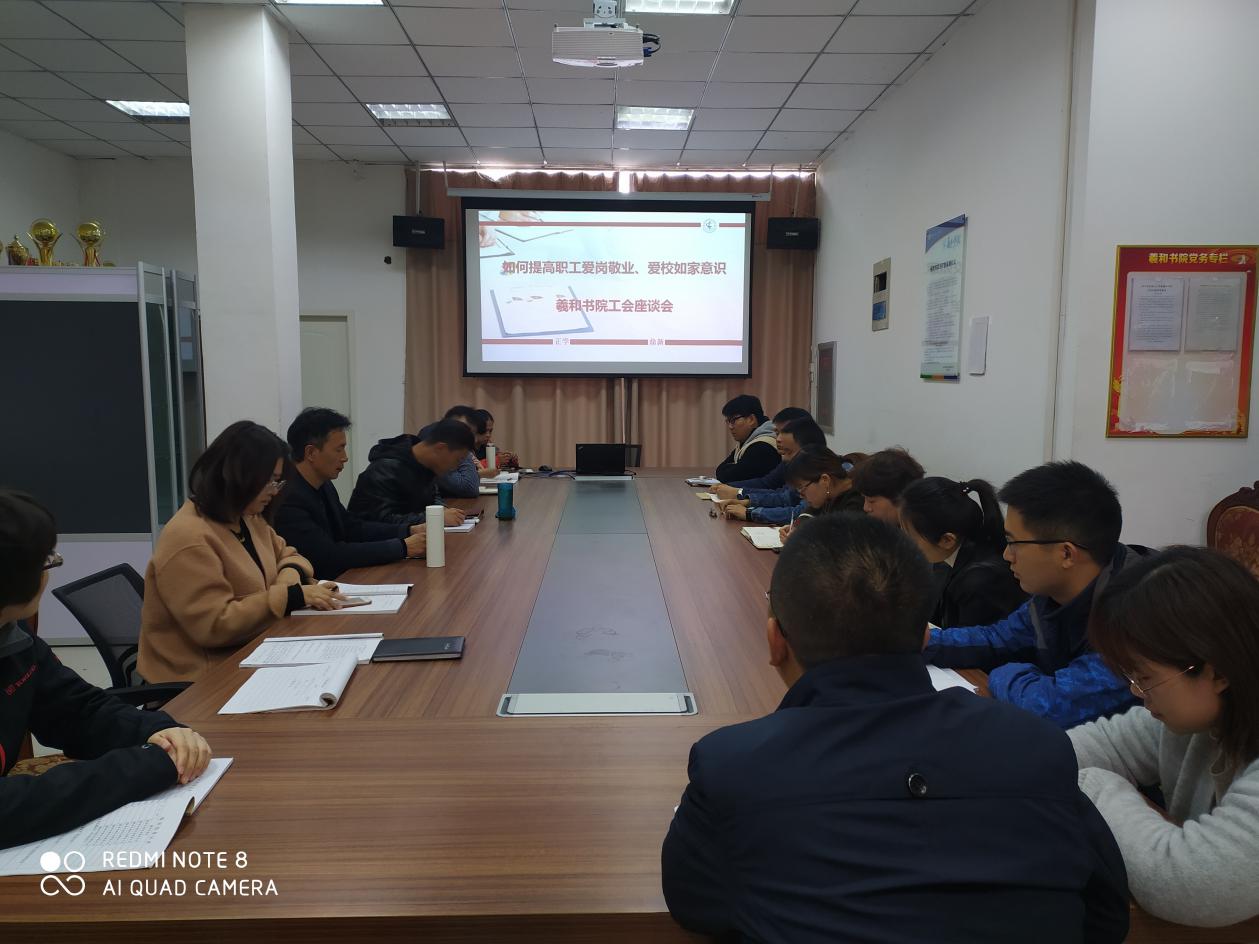 2019年11月15日羲和书院全体教职工在平原新区羲和书院会议室开展了“爱岗敬业,爱校如家”师德师风主题教育活动。