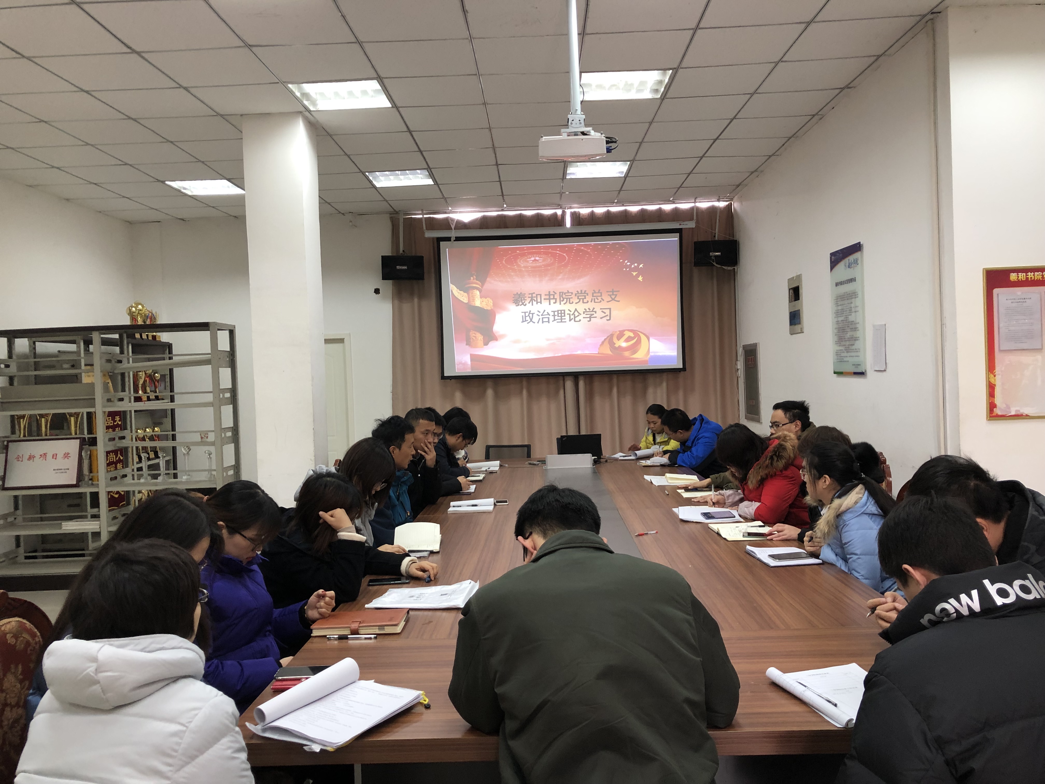 12月9日,羲和书院党总支在羲和书院会议室召开12月份政治理论学习会议,习近平总书记指出:“深入学习贯彻党的十九届四中全会精神 提高社会主义现代化国际大都市治理能力和水平和十九大报告。”崔向前书记主持了本次会议,全体教职工党员参加此次学习。