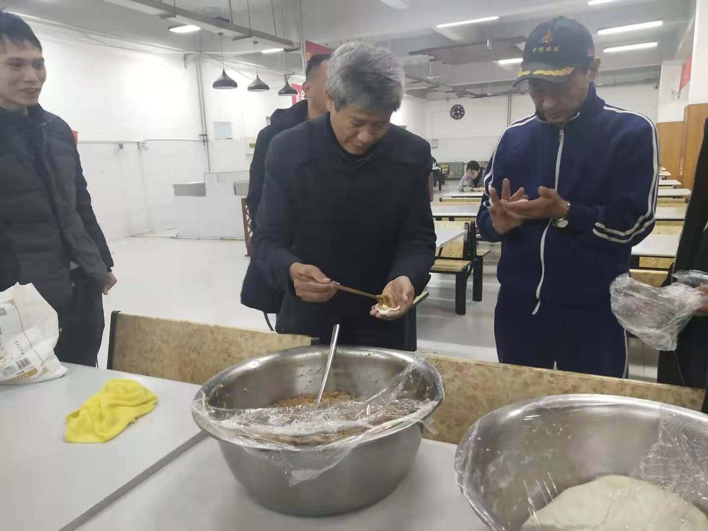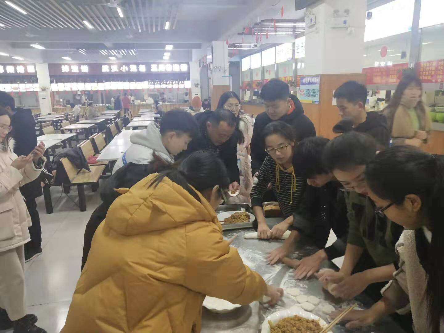 活动开始前,各个队伍的参赛选手早早来到现场做好准备工作。活动主持人宣读比赛规则后,随着翟忠胜主任宣布活动正式开始,各小组成员纷纷大显身手,擀皮儿、包馅儿,分工明确。随着同学们的努力,一个个别出心裁的饺子先后问世,每个独特的形状都是同学们用心创造的结果。比赛场面一度十分热闹,最后在大家的不懈努力下,热气腾腾的饺子载着师生的期待被端上了餐桌。
