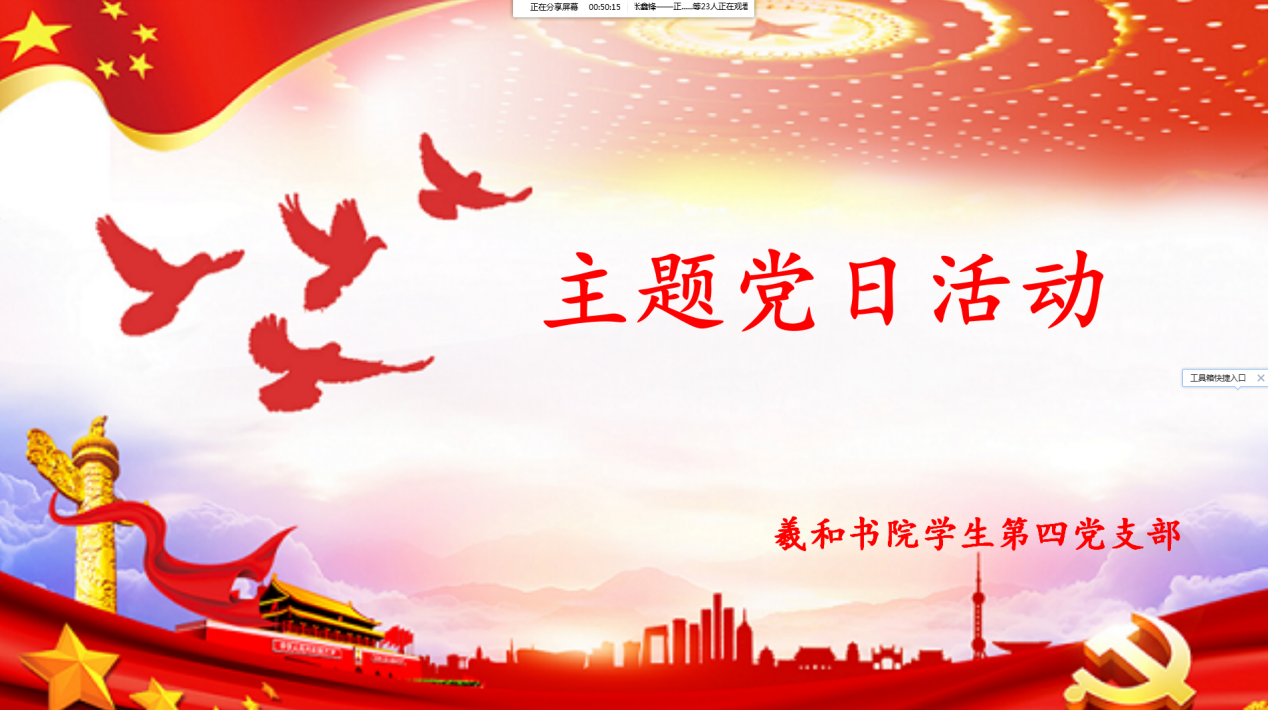 为汇聚起打赢防控疫情阻击战的强大能量,高质量规范化过好党内政治生活,凝聚力量,鼓舞士气,共同抗击新冠肺炎疫情,3月30日,羲和书院学生第四党支部召开了“抗击疫情,党员先行”的线上主题党日活动,全体党员参加。