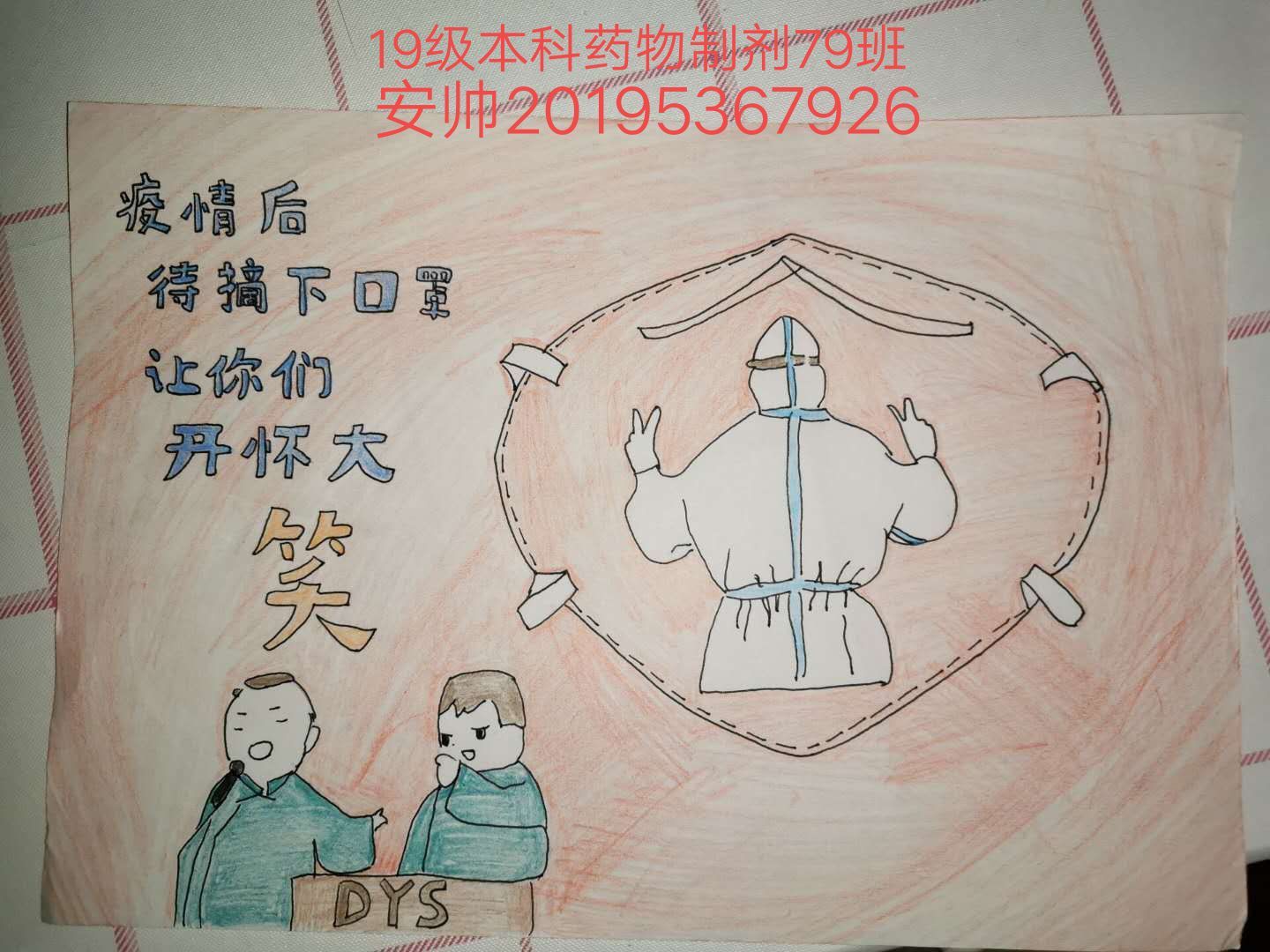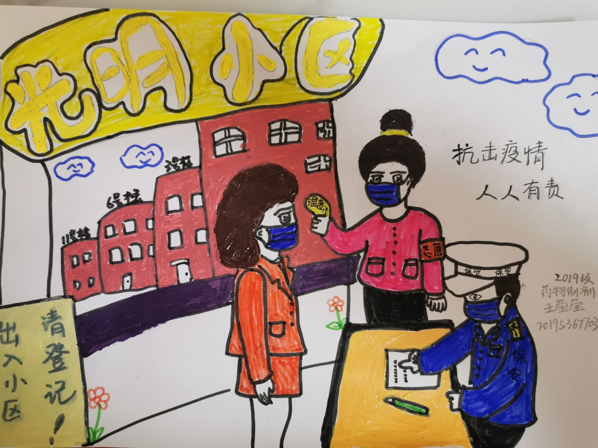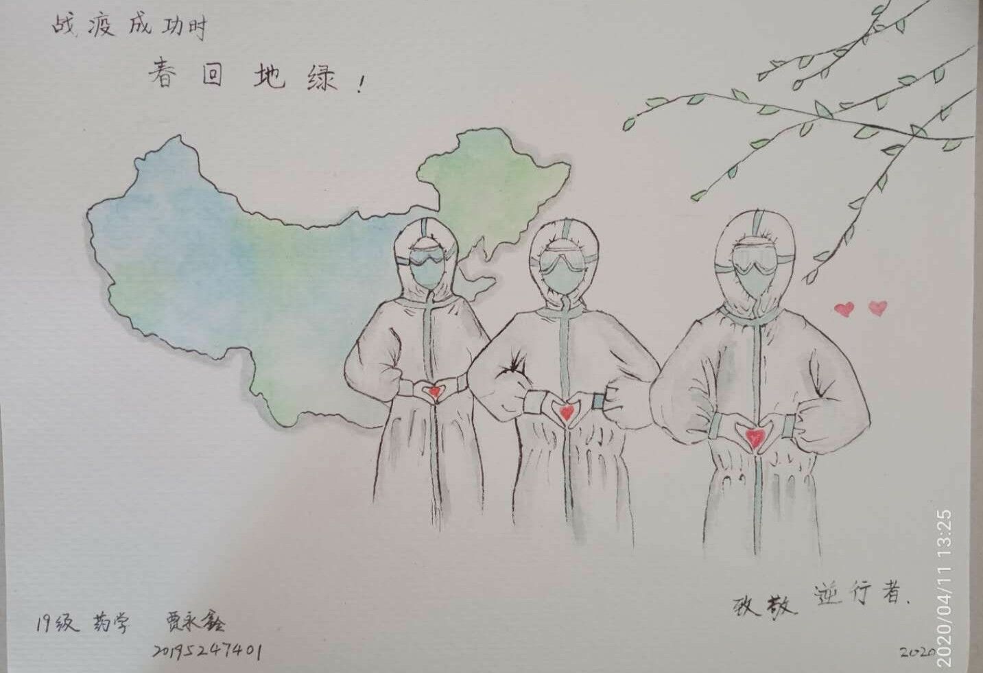 2020年伊始,新型冠状病毒出现的猝不及防,社会各界高度重视,有诸多医护人员、解放军战士以及志愿者毅然决然担负使命,奔赴抗疫前线,为大家筑起一道安全防线。4月初,全国防控疫情的工作依然紧锣密鼓地进行着,我书院同学们根据自己所了解的疫情相关情况制作了防控疫情的宣传画。通过作品,同学们表现出了自己的真心,同学们的一笔一划都充满了对武汉人民的关心以及对武汉的支持。同学们纷纷表示,虽不能到达一线参与防疫情的工作,但是为了打赢这场突如其来的战“疫”,身为这些不拿枪的战士,用自己的实际行动筑牢疫情防控“铜墙铁壁”,贡献自己微薄力量。努力宣传疫情防护工作,给予身处疫区的同学老师鼓励和支持,向一线医务工作者致敬!