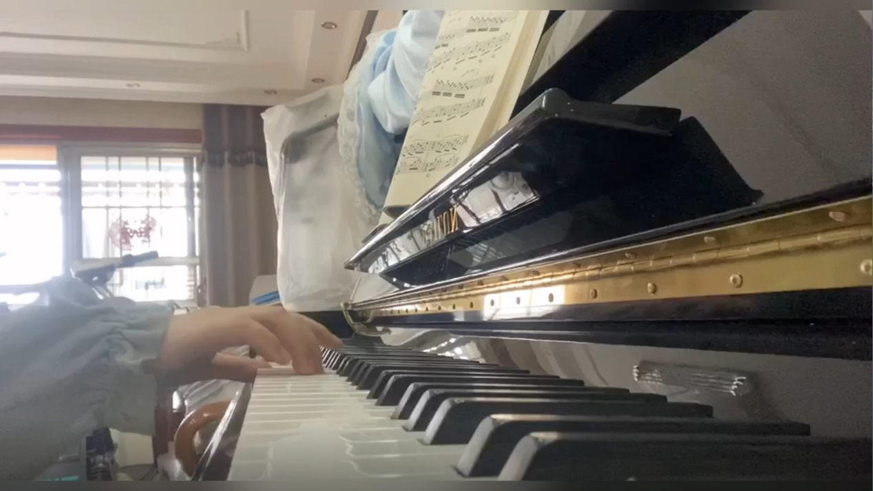 18级临床医学专业王亚婷同学所录的短视频展示了自己通过钢琴来倾诉疫情宅家期间的情绪,她说:“很庆幸自己会弹钢琴,就如同舞蹈一般,弹琴也是我表达自己的一种方式。当处在不同的心境下时,同样的曲子也会弹出不同的感觉。每段旋律背后都藏着我想要倾诉的情感,手指舞动的快慢代表着思绪的流转与起伏。专注于弹钢琴时,我能够忘掉生活学习上的不快乐,更多感受到音乐带给我的静谧与美好。”