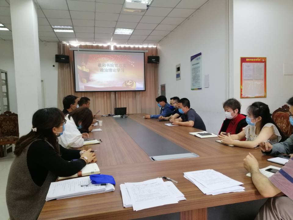 2020518日上午,羲和书院党总支在羲和书院会议室召开5月份政治理论学习会议,习近平总书记:坚定理想信念站稳人民立场 练就过硬本领投身强国伟业和十九大报告。崔向前书记主持了本次会议,全体教职工党员参加此次学习。