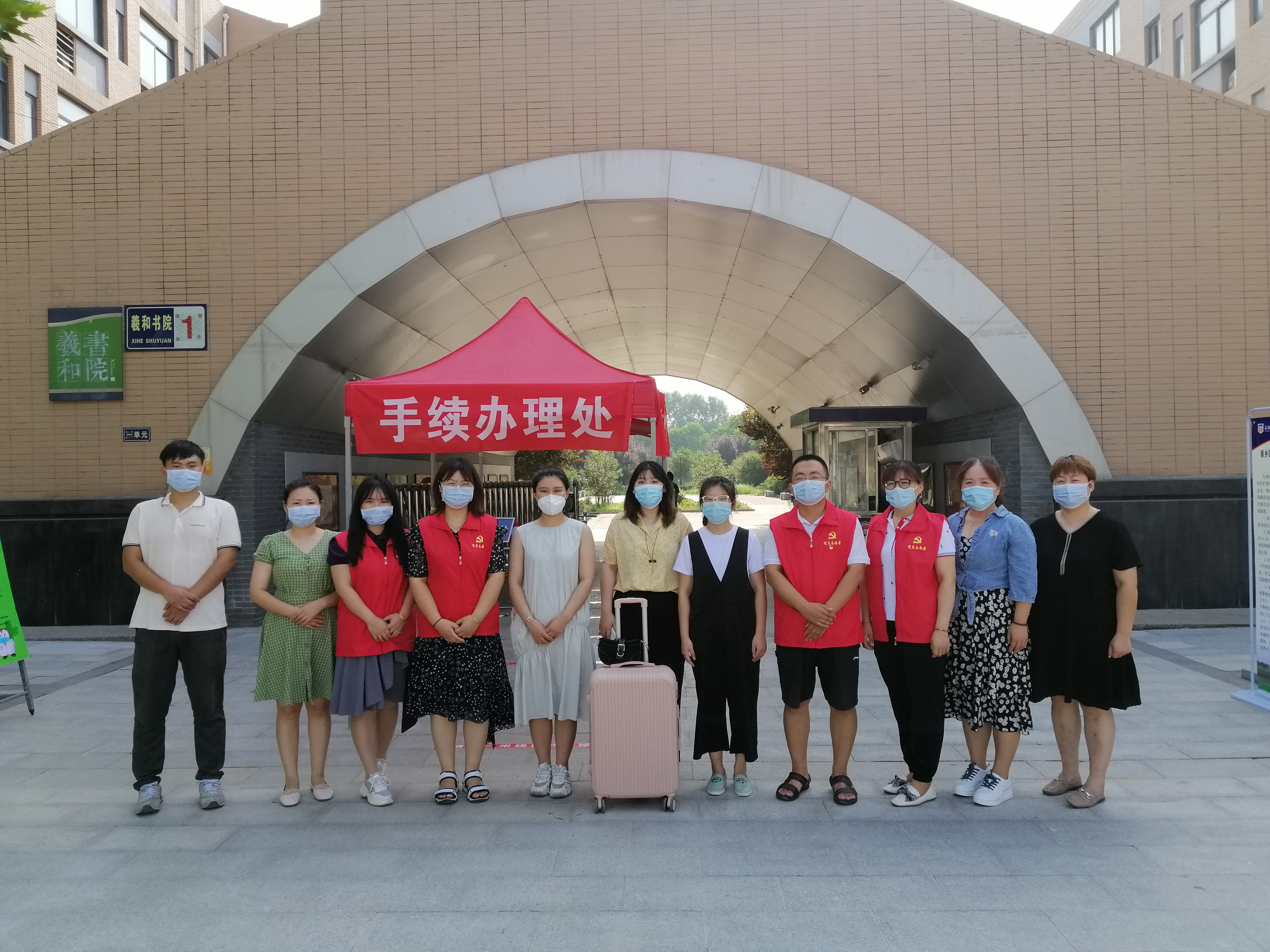 疫情渐去,学子归来。按照我校派送实习生时间安排,全体2020年实习生根据实习所属地区于8月11日-13日,分批、错峰、有序返校。8月11日一早,羲和书院党总支先锋队的老师们就早早来到书院门口,迎候学生们“回家”。