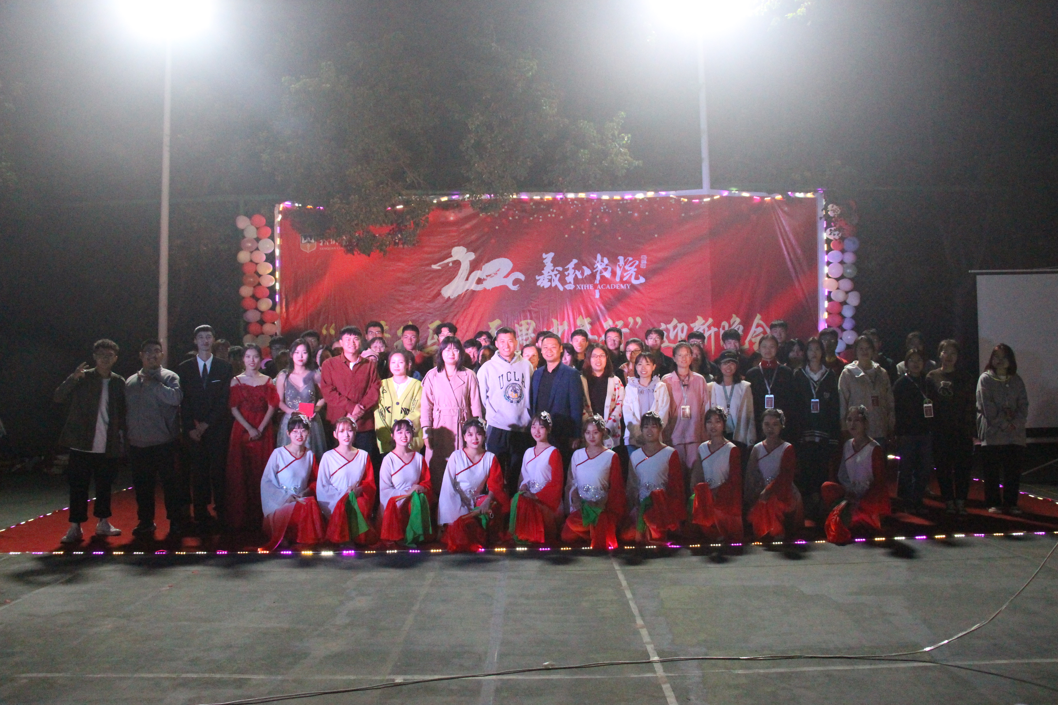 史良老师,文能提笔站三尺讲台,武能携枪越万里战场。今天,他以一首《向天再借五百年》向观众们展示曾经的峥嵘岁月。大气磅礴、气震山河的演唱引得观众席传来连连的掌声。紧接着的小品《常回家看看》,以轻松幽默的表演形式逗得观众们发出阵阵欢笑。可当一句“常回家看看!”迸出的时候,大家又陷入回忆,回味起家的温暖。而随后的街舞《SOLO》点燃了整场的爆点,一颗颗闪亮的星,用动感的舞姿随着激情的舞曲律动,激发出了全场的尖叫。独唱《失落沙洲》像埋藏在最后的宝藏,那清脆的歌声,好似山谷中黄鹂的鸣叫,婉转动听,让人沉醉其中。悠扬的歌声缓缓地围绕在羲和书院的上空。最后,主持人的声声祝福,以“以梦为马,无畏少年行”为晚会划上了句号。晚会结束后,全体演职人员与羲和书院辅导员老师集体合影留念。