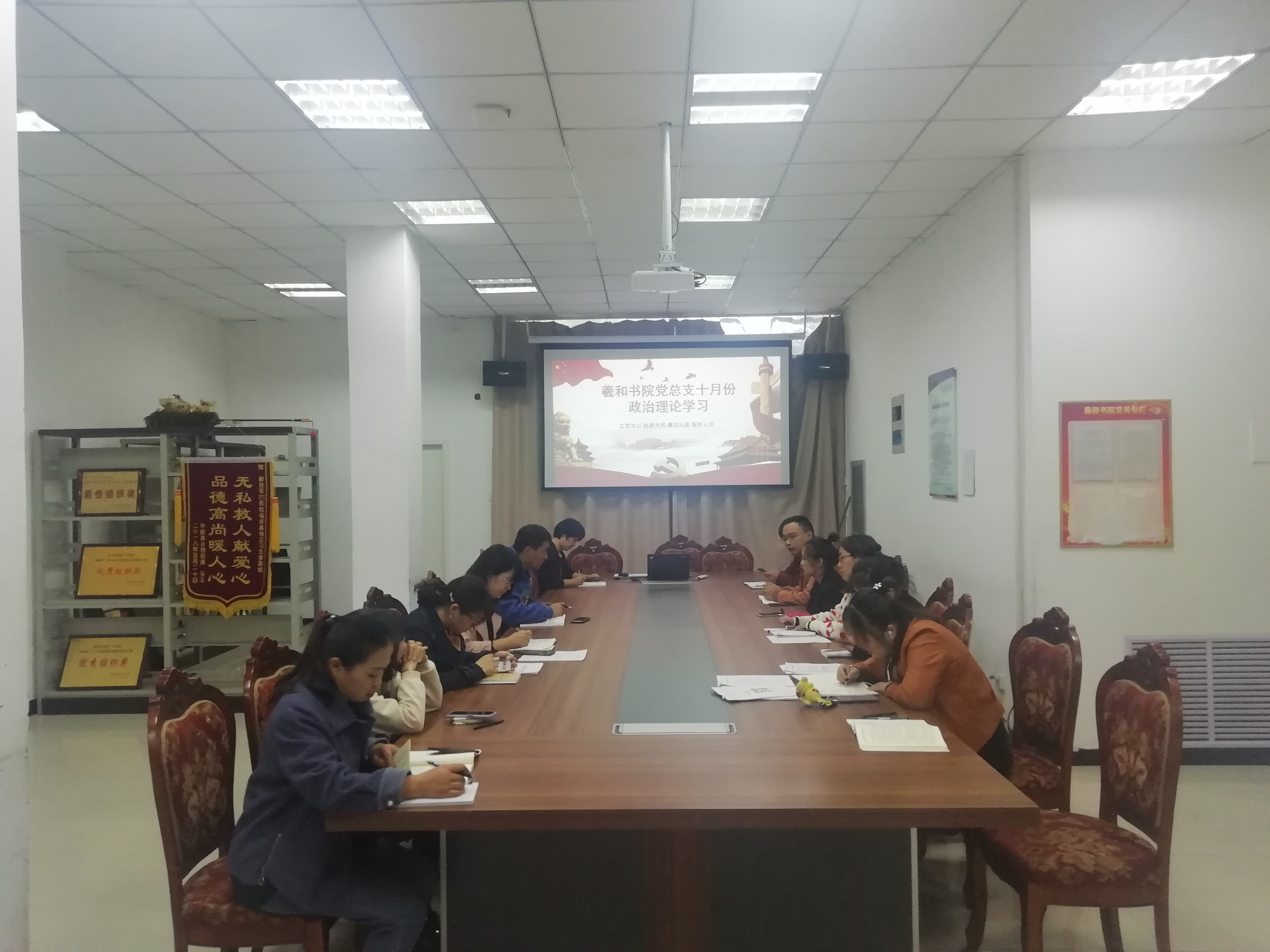 10月16日上午,羲和书院党总支在羲和书院会议室召开10月份政治理论学习会议,习近平:继承和发扬老一辈科学家胸怀祖国、服务人民的优秀品质、党的十九大报告和《习近平谈治国理政》第三卷。刘小磊书记主持本次会议,全体教职工党员参加此次学习。