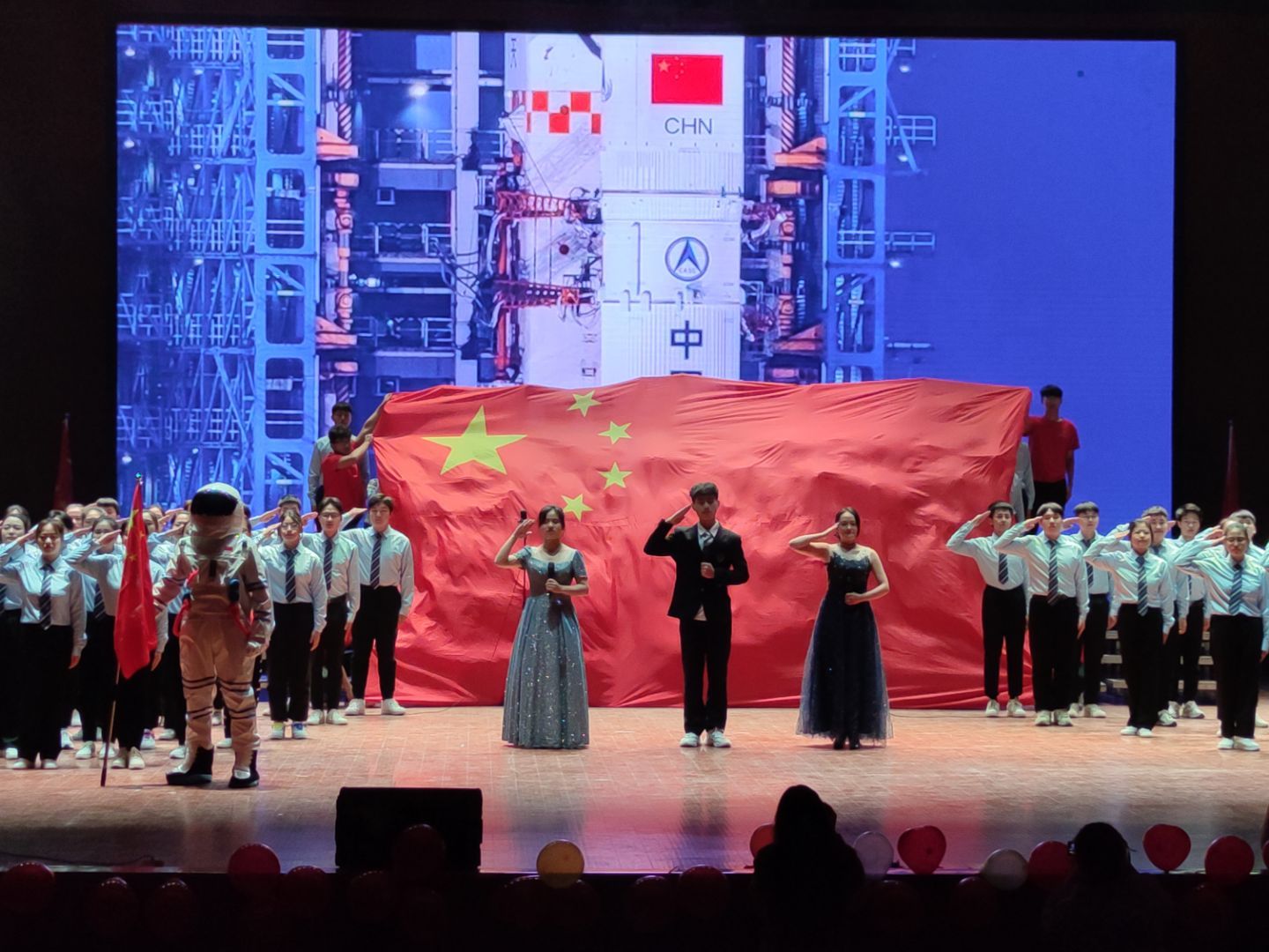 本次活动在一首《义勇军进行曲》中拉开序幕,活动由百人诵和才艺表演两部分组成。六个书院分别从“红船精神”、“抗战精神”、“抗美援朝”、“两弹一星”、“航天精神”、“抗疫精神”进行了自己的表演。