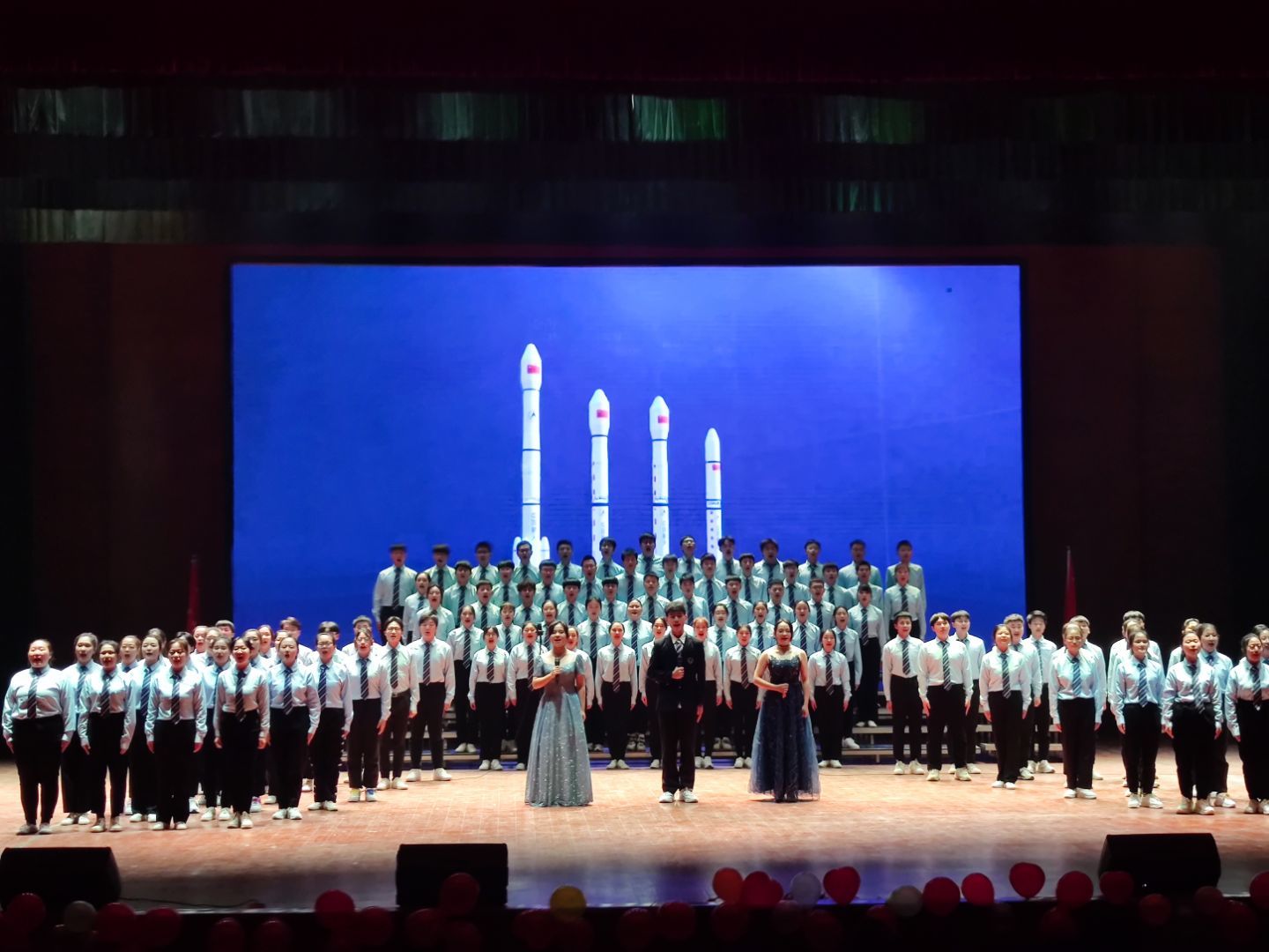 作为第五组的羲和书院以“泱泱中华航天魂”为标题,在柔美的配乐与优雅的舞蹈中开始了自己的展示。从开始的缓和之声到后来的铿锵之音,每一个音符都不断地牵动着观众们的情绪,使观众的眼前浮现出一幅幅生动形象的画面,这些画面见证着我们国家航天梦实现的整个过程。在第二环节中,羲和书院表演的《生来倔强》以相声快板为开头,使观众眼前一亮,牢牢地抓住了观众的眼球,不仅活跃了现场的气氛,而且引出了之后的舞蹈。表演者们随着鼓点踏着自己的步伐,坚强有力的动作如同在击打着挡在面前的屏障,如同那些科技人员破解在航天上面对的一个个难题,不断进行完善。在副院长薛宏的致辞和视频总结之后,第九届校园读书月百人诵活动圆满结束,羲和书院以95.82分获得了季军。