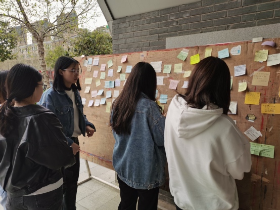 活动前期,相关部门对此次活动进行宣传,吸引广大学生积极参与活动,负责人于活动群中详细说明了活动内容与注意事项,保证活动的顺利进行。活动中期,志愿者们在便利贴上写下自己的短期目标与计划,并亲手贴于展板上,以此激励鼓舞自己脚踏实地,努力前行,并给予其他同学以精神鼓励,形成了良好的校园文化氛围。活动后期,负责人将同学们的作品拍照留念。在负责人与志愿者们的协调配合下,本次活动圆满完成。